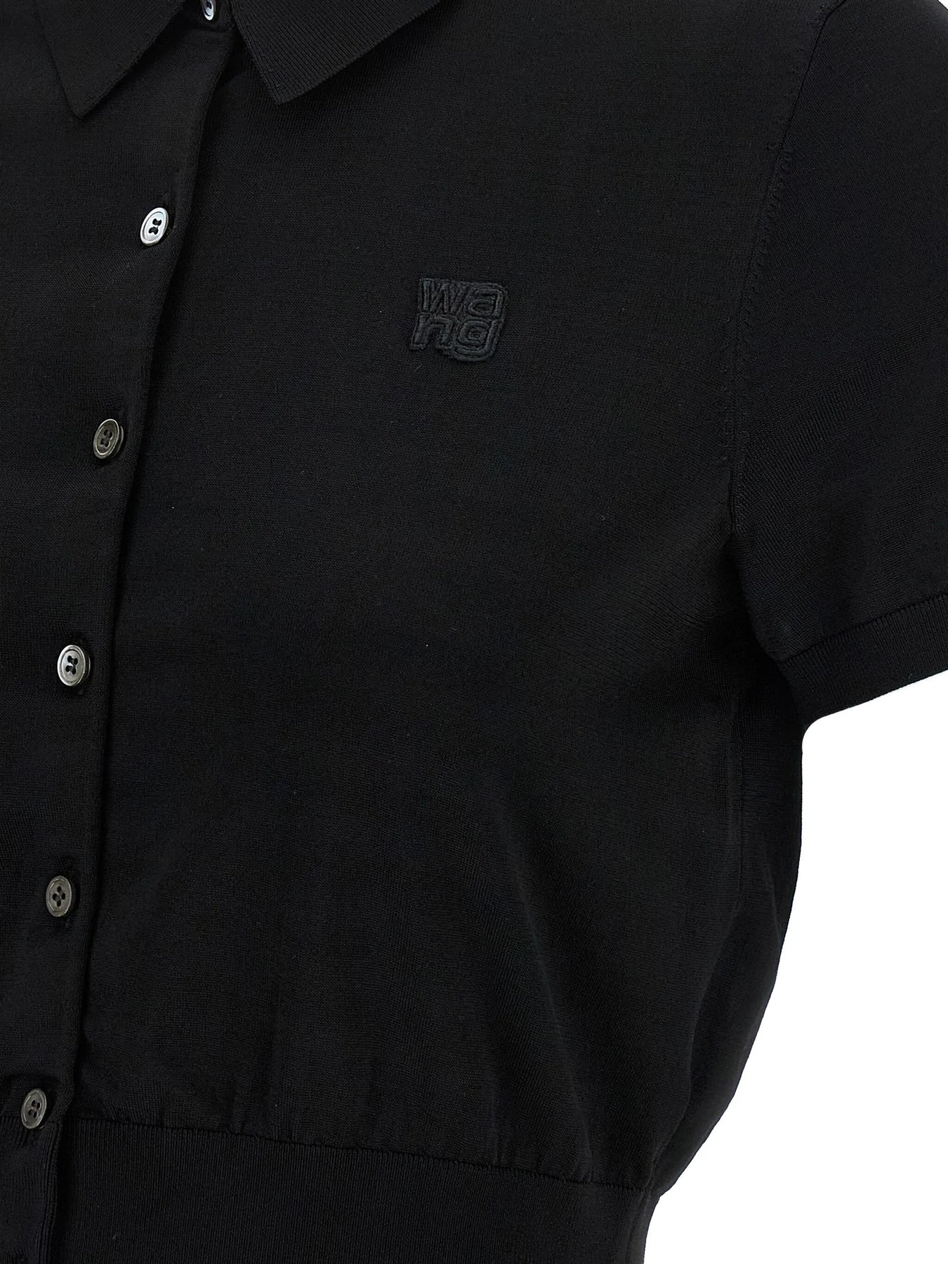 Alexander Wang Short Sleeve Polo Cardigan delivers contemporary luxury with hybrid sportswear-inspired design. Crafted from premium knit fabric in sophisticated black, featuring classic polo collar and button-front closure for versatile styling. The cropped silhouette and refined construction showcase the brand's signature modern minimalism.