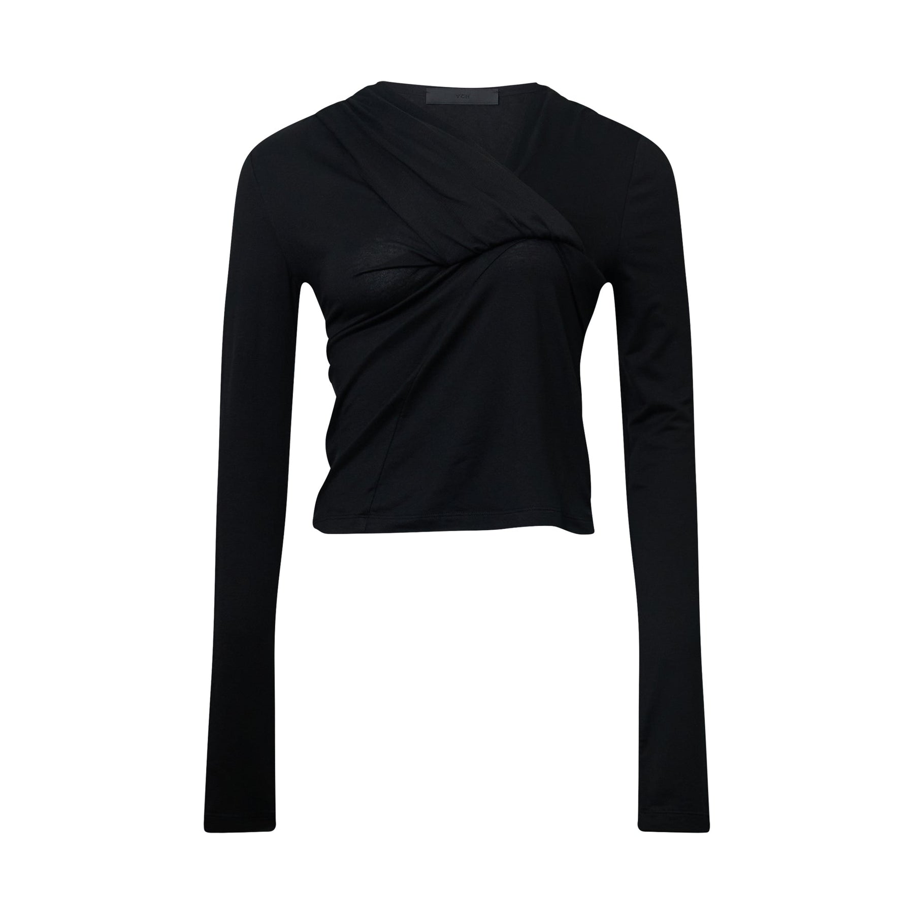 The YCH Asymmetrical Bralette Top delivers modern femininity with architectural draping and contemporary construction. Crafted from stretch jersey in classic black, featuring an innovative crossover design that creates visual interest and flattering lines. The asymmetrical silhouette and fitted bodice offer versatile styling options for both casual and elevated looks.
