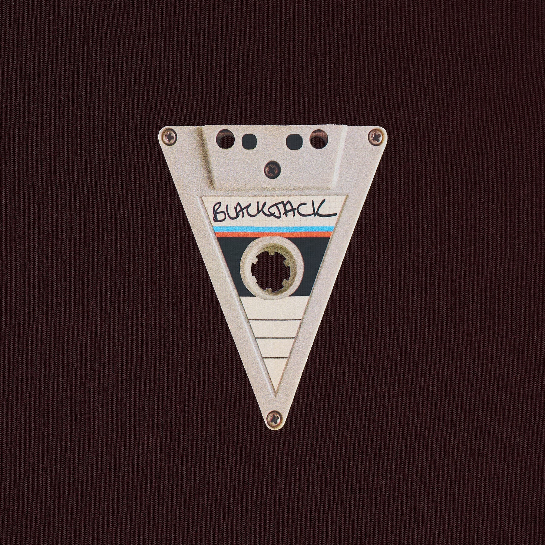The Blackjack Cassette Tee delivers vintage-inspired streetwear with a nostalgic audio equipment graphic. Crafted from premium cotton in rich burgundy, featuring a triangular cassette tape design with metallic accents on the chest. The relaxed fit and signature Blackjack branding create a statement piece that celebrates retro music culture.