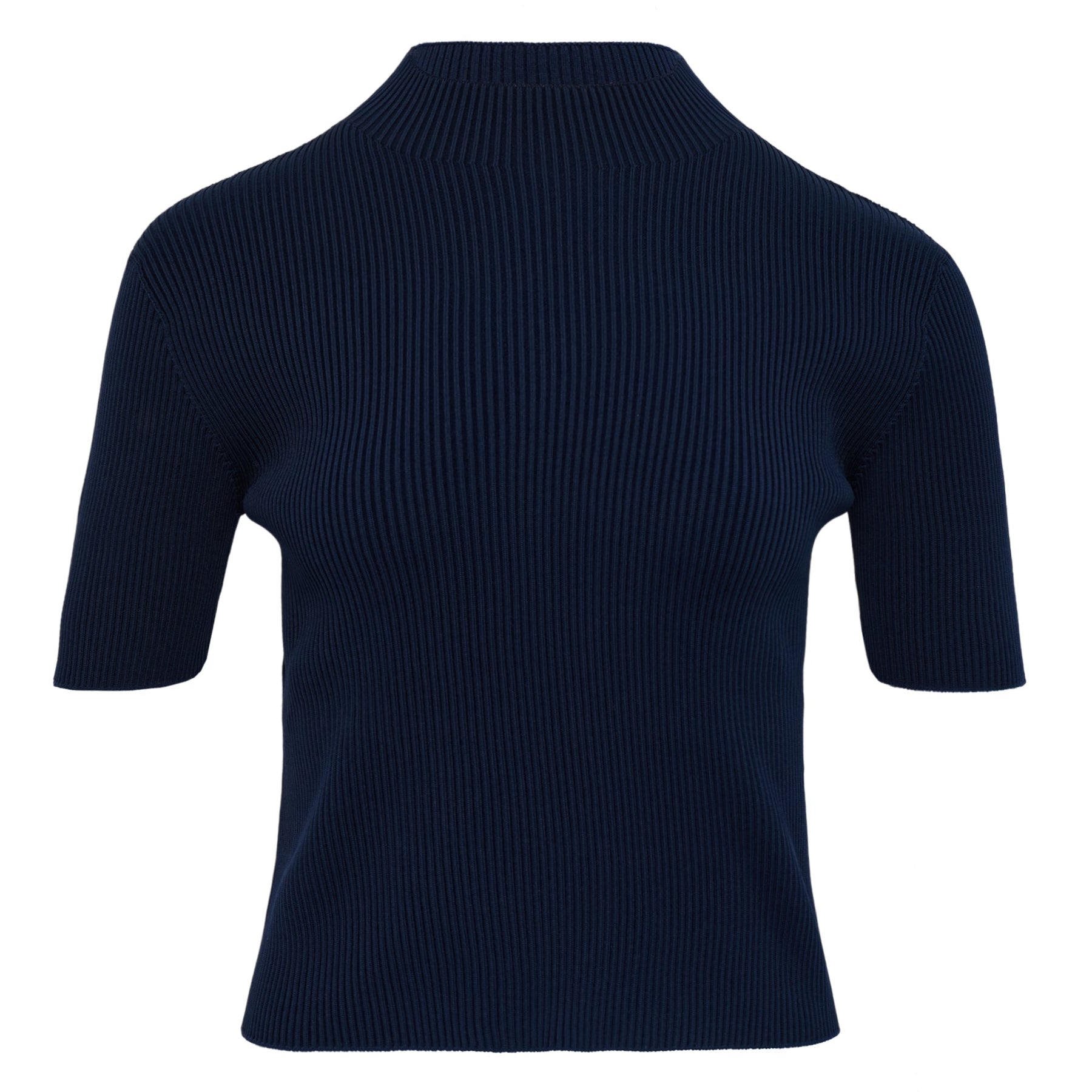 CFCL Portrait Short Sleeve Top delivers contemporary Japanese minimalism with innovative knit construction. Crafted from premium ribbed knit in deep navy, featuring a refined mock turtleneck collar and streamlined silhouette. The precise engineered construction and architectural fit showcase CFCL's signature approach to modern knitwear.