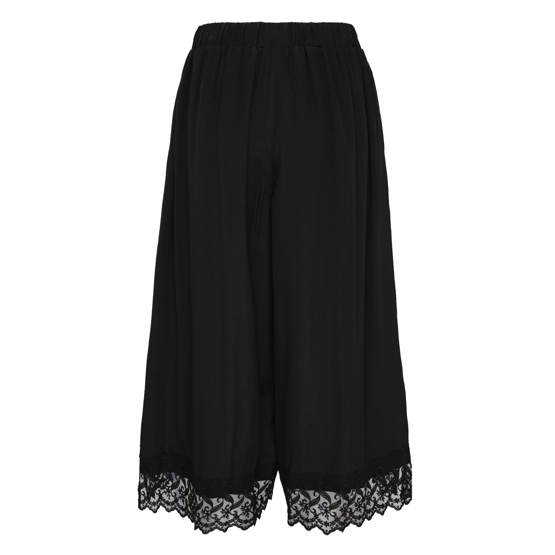 Simone Rocha Cropped Lace Trim Trousers deliver feminine romanticism with contemporary tailoring and signature decorative detailing. Crafted from premium black fabric with intricate lace trim along the cropped hemline, featuring an elasticated waistband with adjustable drawstring. The relaxed silhouette and delicate lace overlay create a sophisticated balance between comfort and elevated design.