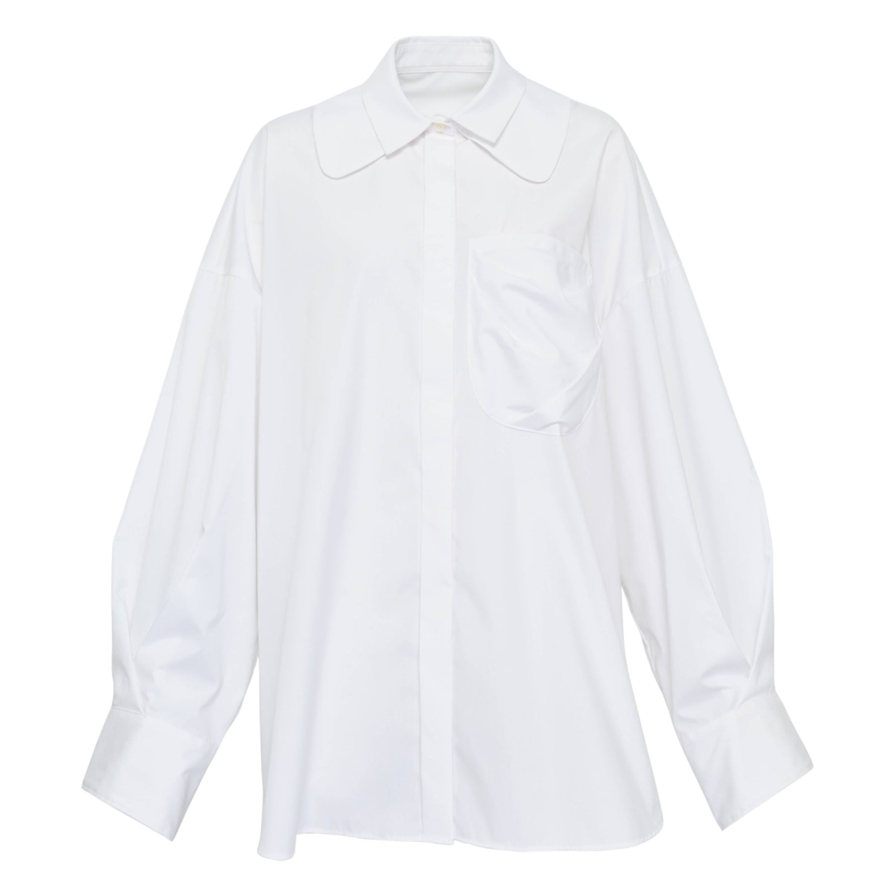 The ENFOLD Tulip Shirt delivers contemporary minimalist elegance with sophisticated tailoring and refined construction. Crafted from premium cotton poplin in crisp white, featuring the brand's signature clean lines and architectural silhouette. The distinctive tulip-inspired collar design and structured fit create a modern statement piece for elevated wardrobes.