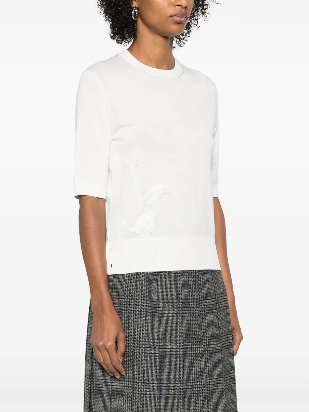 Club21 - Thom Browne - Feather Intarsia Pointelle 4-Bar Tee Women - TEES - White