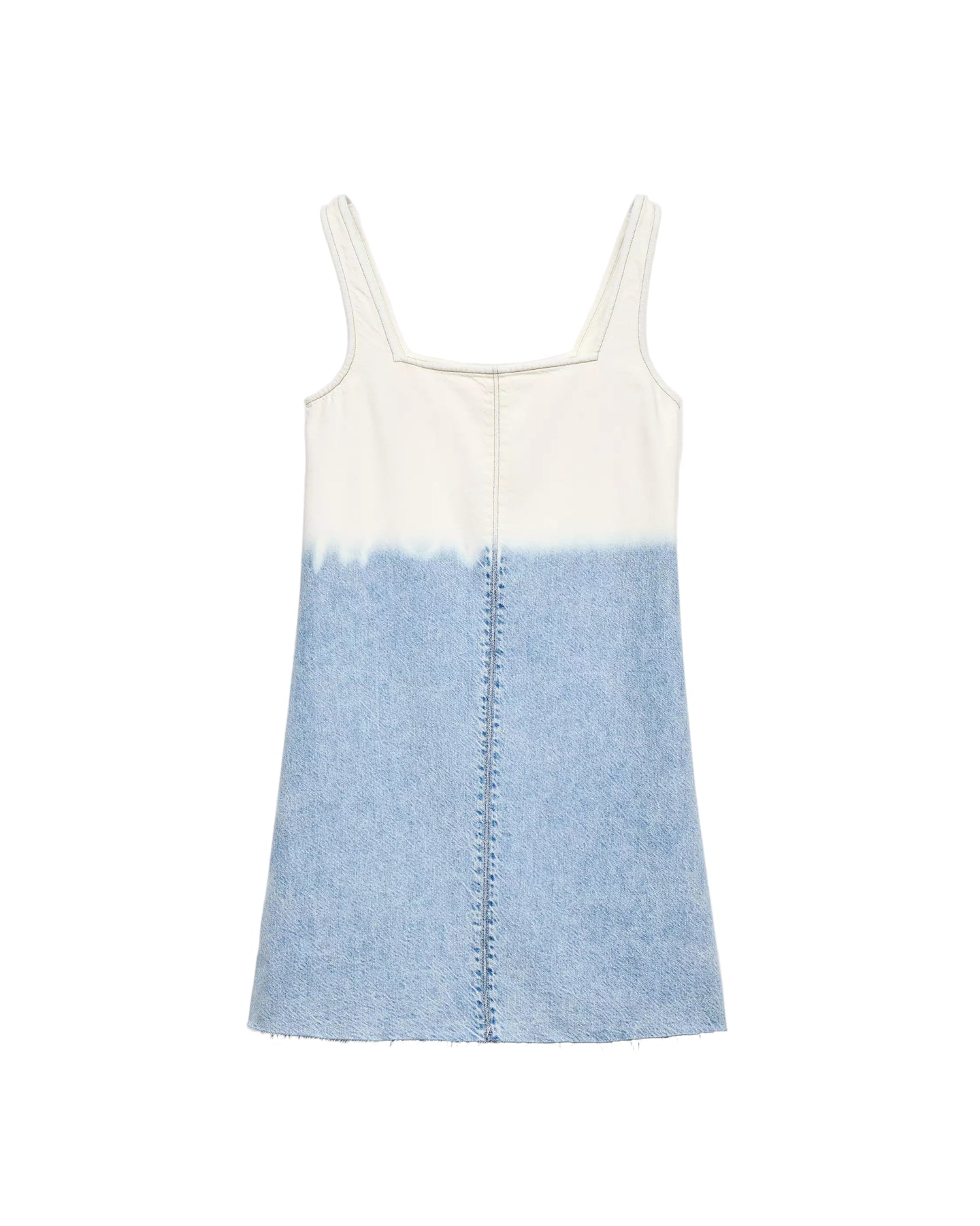 The rag & bone Featherweight Jayde Dress delivers contemporary minimalism with a striking ombré denim design. Crafted from lightweight washed denim featuring a gradient blue-to-white fade effect, showcasing the brand's innovative approach to classic materials. The sleeveless construction and exposed center seam create a modern silhouette perfect for effortless summer styling.