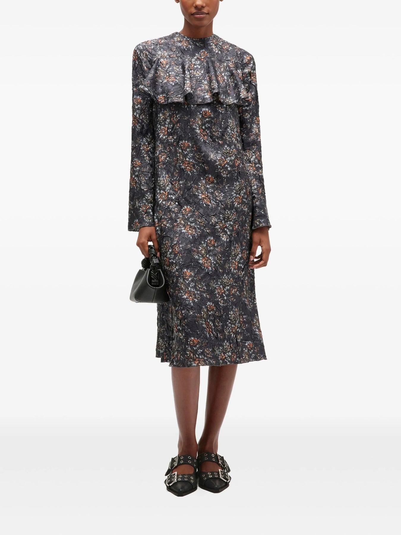 Club21 - GANNI - Shibori Pleat Midi Long Sleeve Dress - WOVEN DRESSES - Black