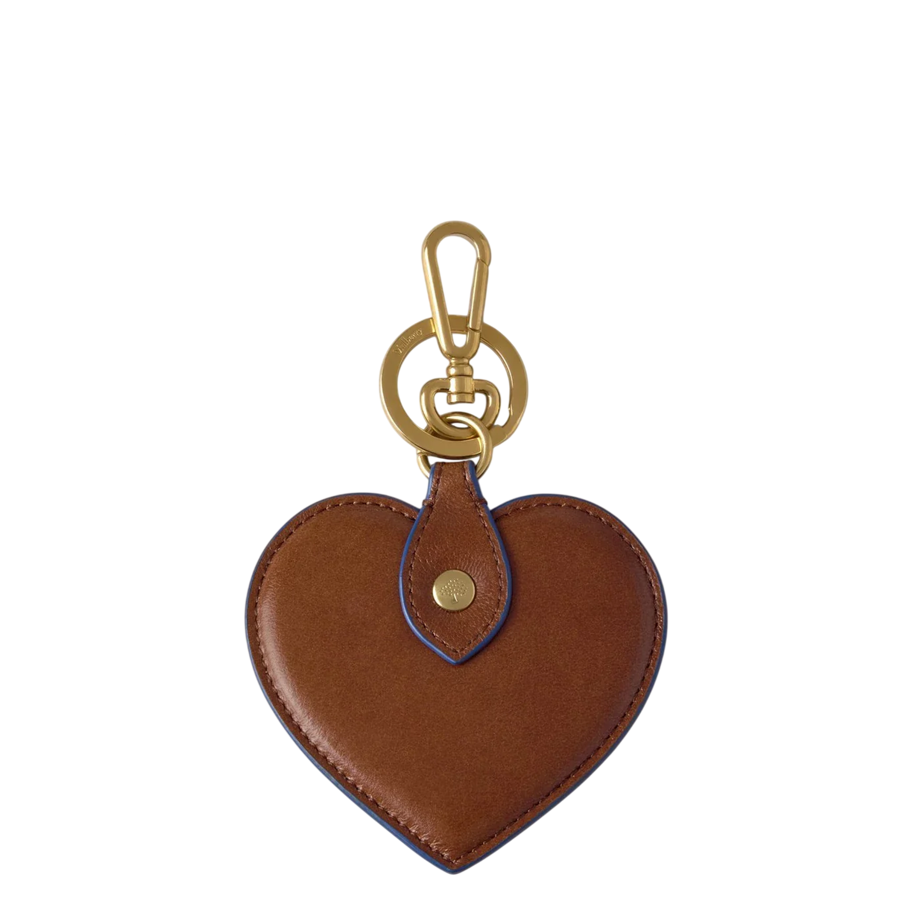 The Mulberry Heart Keyring delivers charming luxury with signature craftsmanship and whimsical design. Crafted from premium small classic grain leather in rich oak brown with contrasting blue edges, featuring polished gold-tone hardware. The iconic heart silhouette and Mulberry tree logo create a distinctive accessory that elevates any key collection.