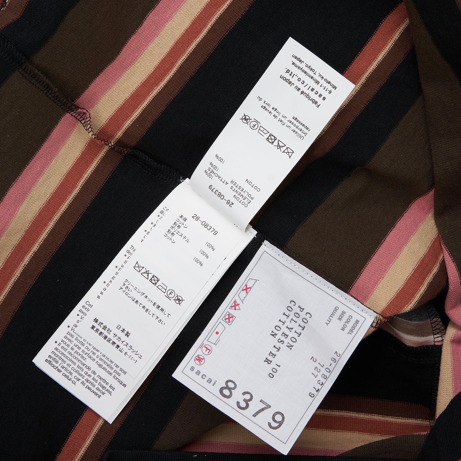 sacai Horizontal Stripe T-Shirt delivers contemporary Japanese design with architectural silhouette and innovative construction. Crafted from premium cotton blend featuring multicolored horizontal stripes in earthy tones of black, brown, pink, and gray. The oversized boxy fit and signature sacai deconstructed aesthetic create a distinctive statement piece for modern wardrobes.