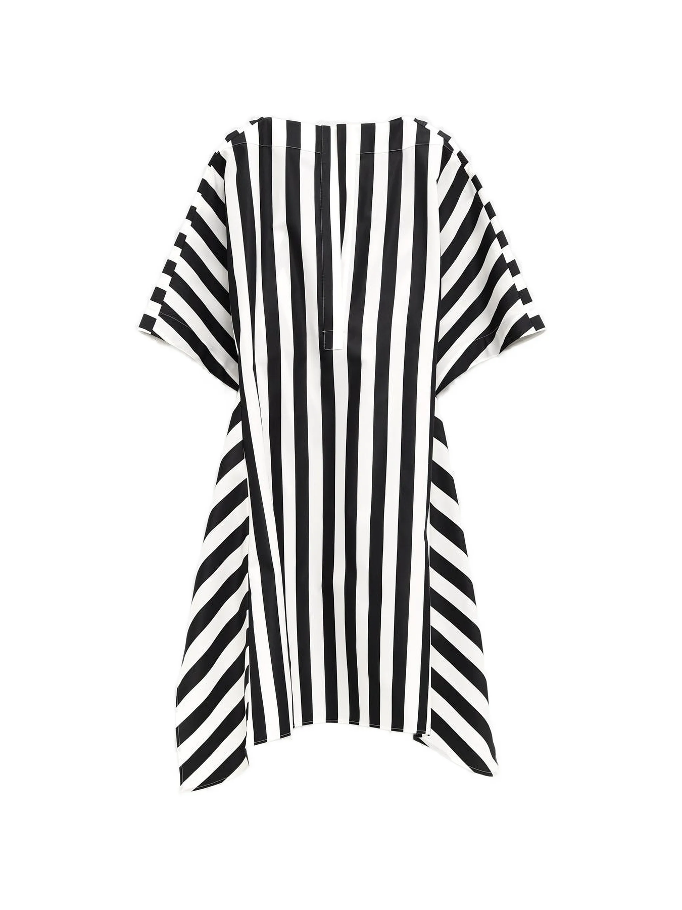 JACQUEMUS La Tunique Moisson delivers French minimalist elegance with distinctive architectural draping and contemporary silhouettes. Crafted from premium cotton in classic black and white stripes, featuring dramatic cape-style sleeves and asymmetrical hemline. The signature JACQUEMUS proportions and avant-garde construction create a statement piece that embodies Provençal-inspired sophistication.