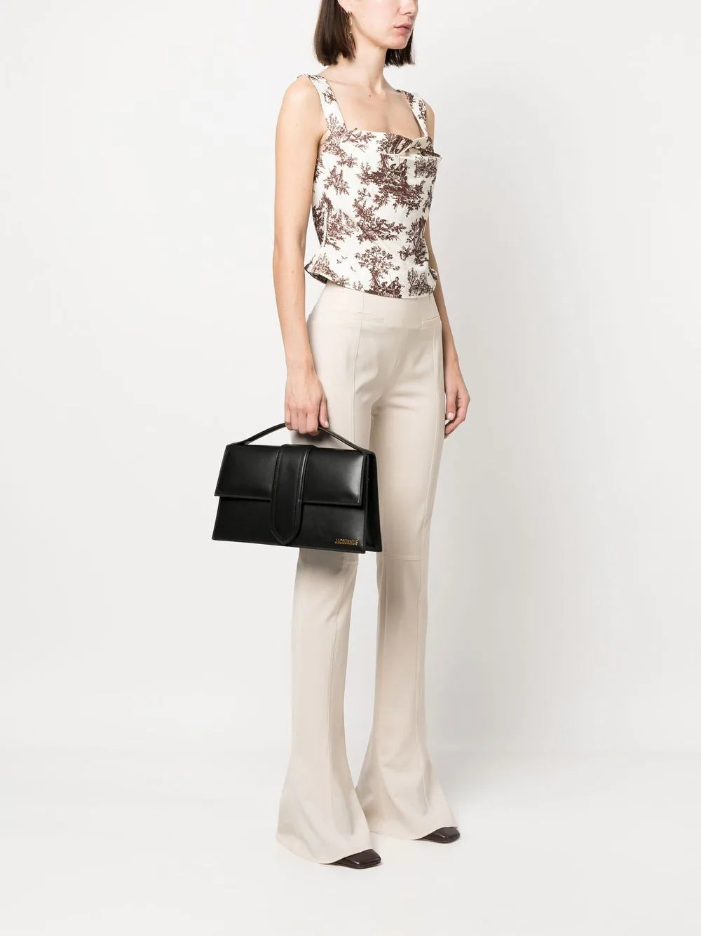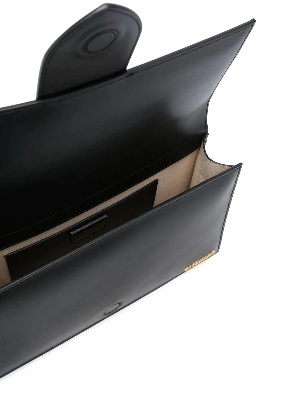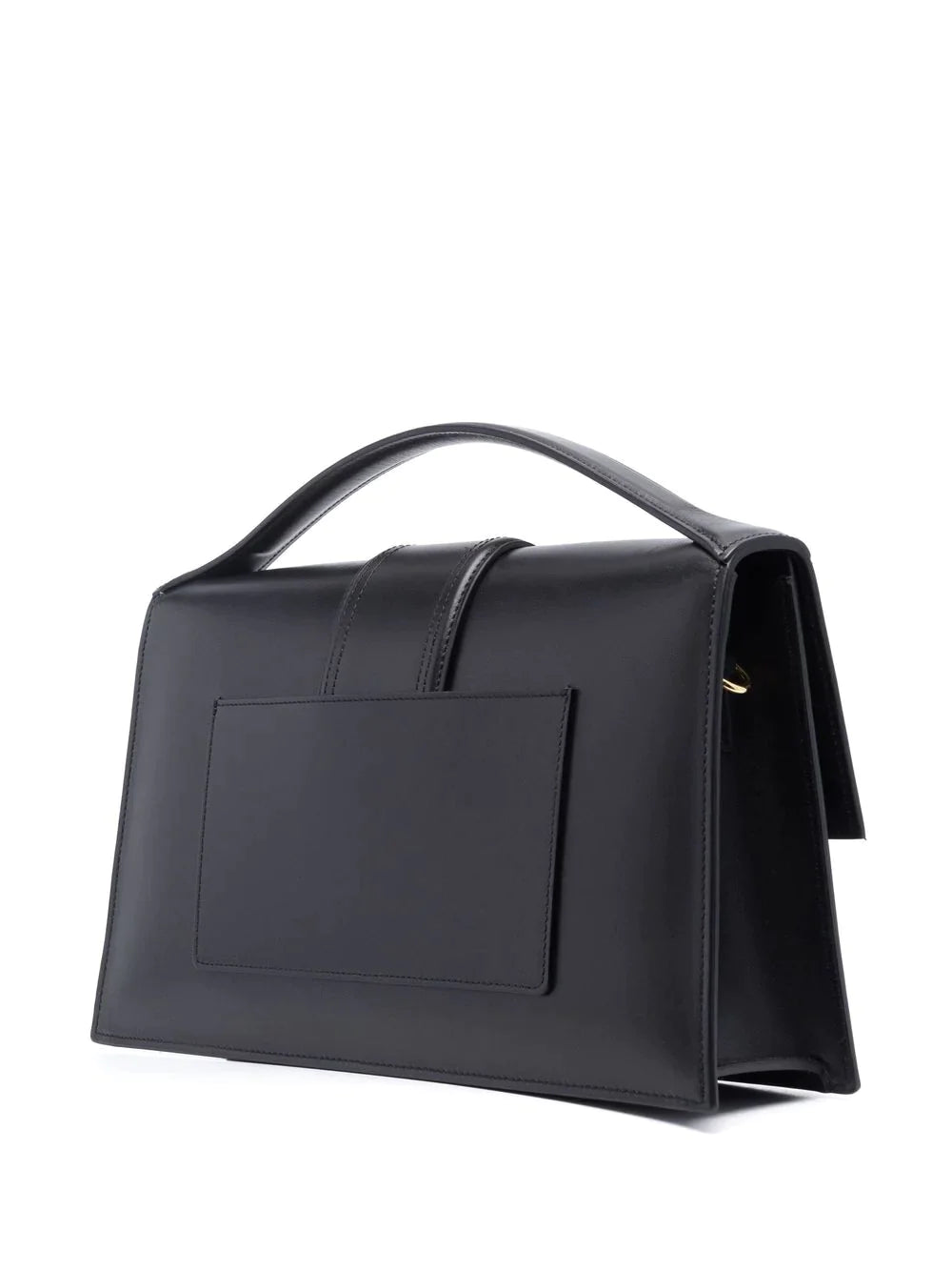 JACQUEMUS' Le Bambinou is a larger iteration of one of the brand's signature silhouettes. Presented in a timeless black hue, this calf leather bag features a detachable shoulder strap, allowing the accessory to be worn either over the shoulder or held by the top handle. The gold logo-plaque adorns the front for the recognizable focal point.