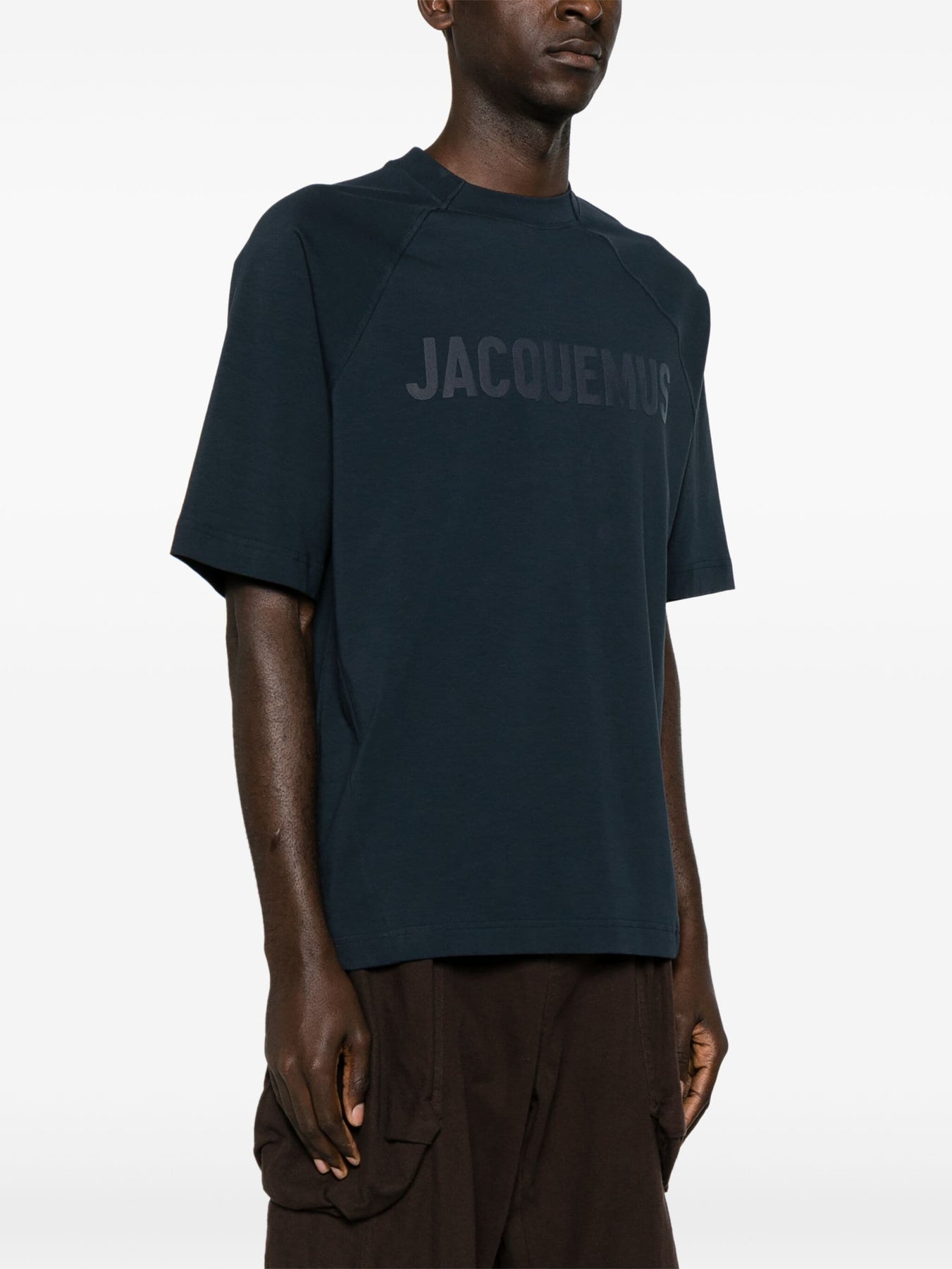 The Le Typo T-shirt from Jacquemus is adorned with appliqué logo lettering at the front, echoing the brand’s affinity for minimalist design. It's cut from navy cotton to a classic crew-neck silhouette with raglan sleeves.