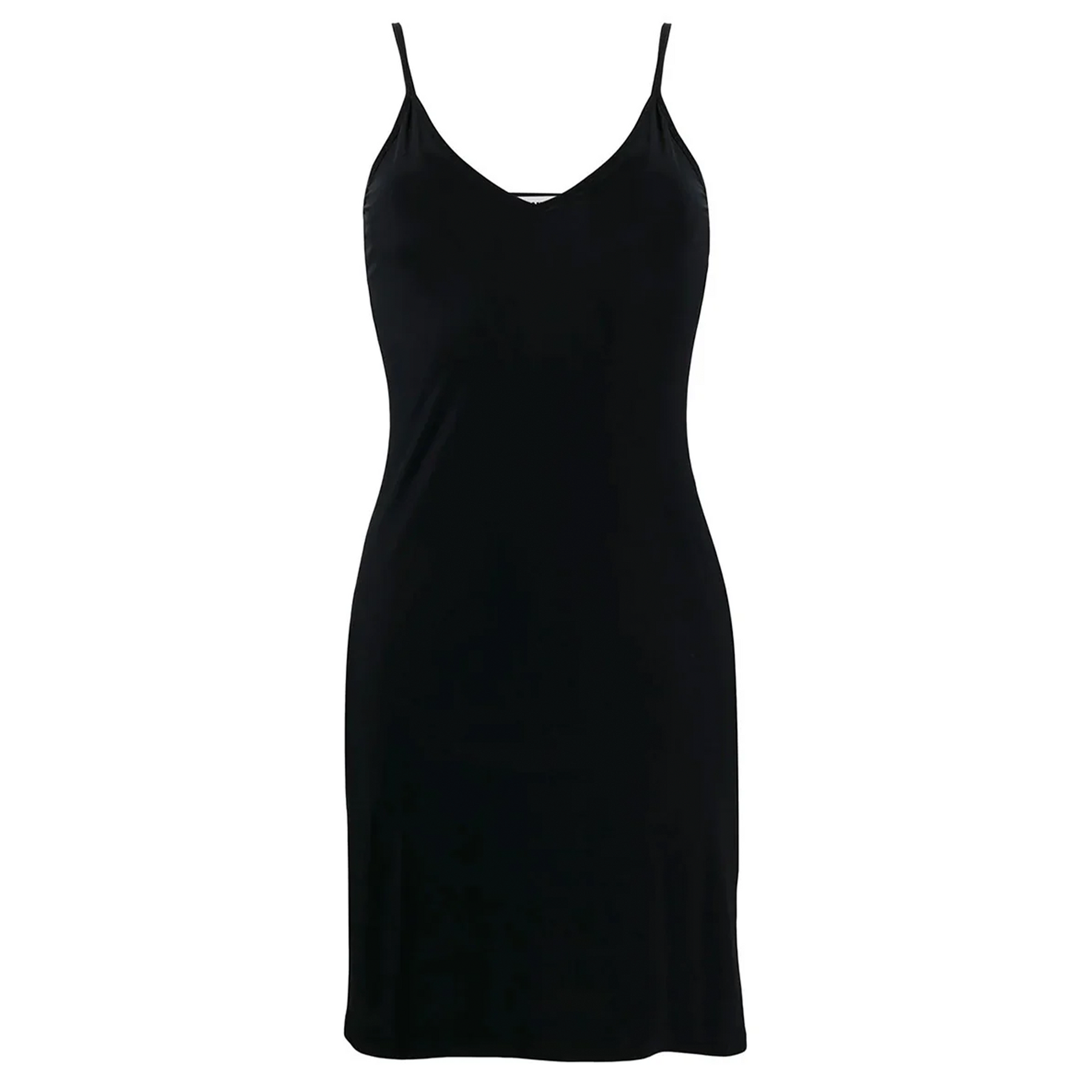Jil Sander wants you to feel your best, even when you're at your worst - yes, we know your hair can be messy at home. And this black fitted slip dress from Jil Sander will keep you looking great, even if you're home alone with your cat. Bingo!
