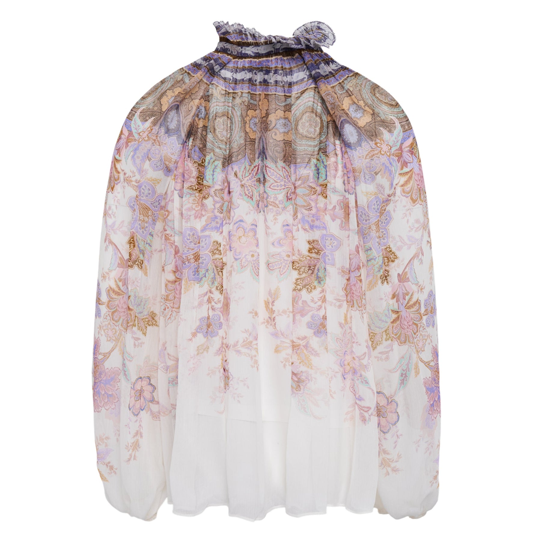 The ZIMMERMANN Luna Billow Blouse delivers romantic femininity with bohemian elegance and statement silhouette. Crafted from lightweight silk chiffon in ethereal floral print with paisley motifs, featuring voluminous balloon sleeves and gathered neckline detail. The semi-sheer construction and signature ZIMMERMANN botanical artistry create a dreamy statement piece for elevated occasions.