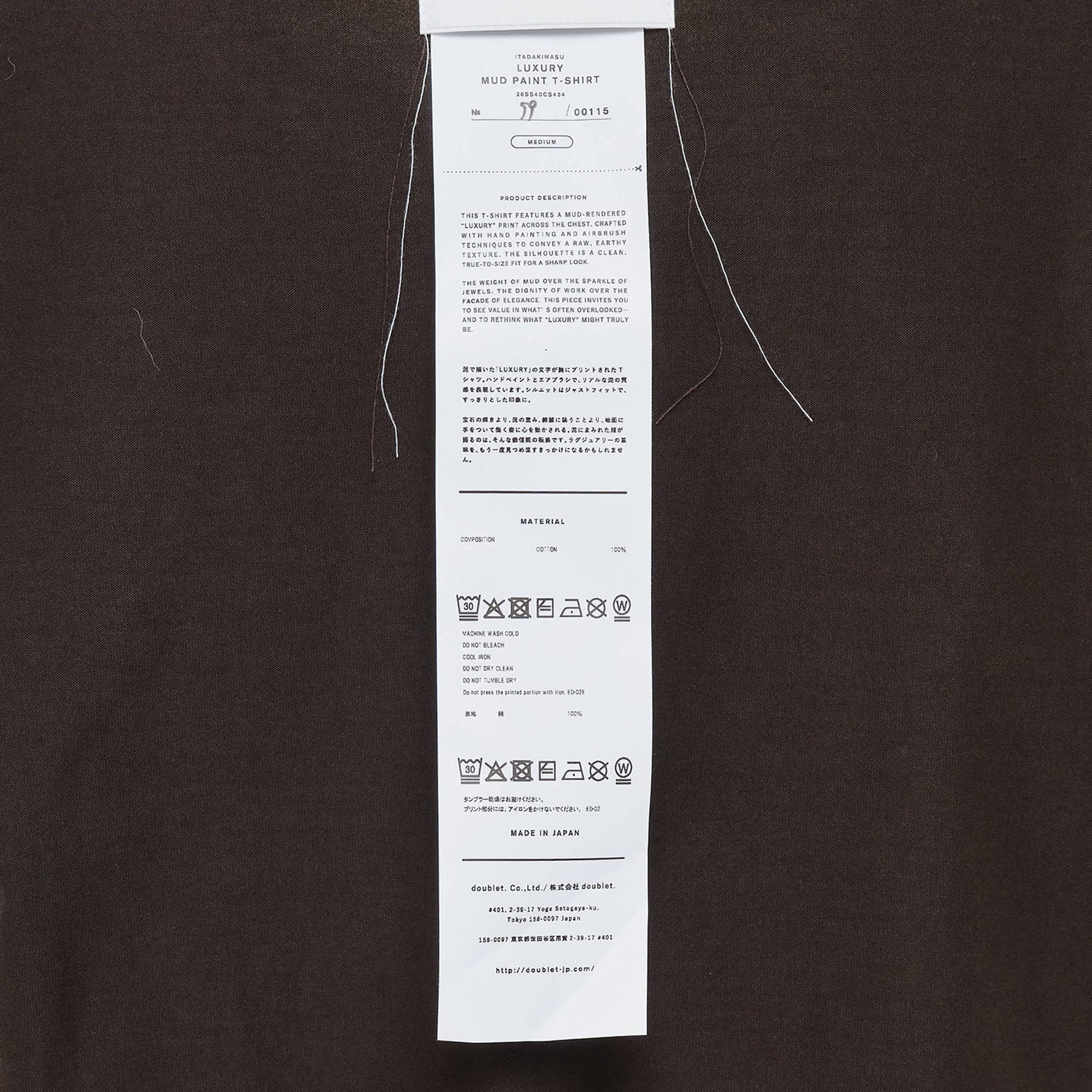The doublet Luxury Mud Paint T-Shirt delivers avant-garde streetwear with artistic distressed detailing and contemporary Japanese design. Crafted from premium cotton with hand-applied mud paint effect and bleach treatment creating unique worn-in texture. The distressed aesthetic and signature doublet craftsmanship create a statement piece that bridges art and fashion.