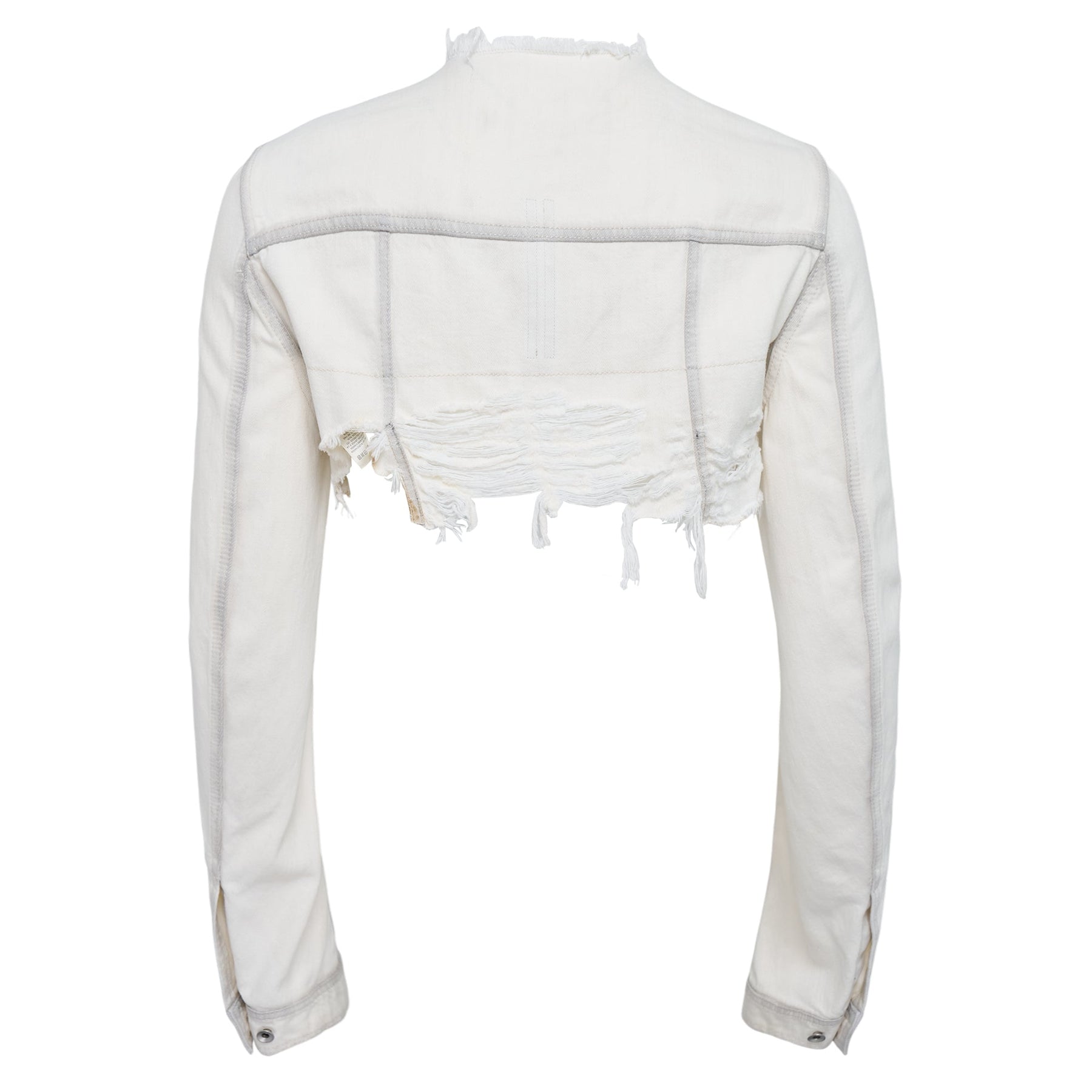Rick Owens Microworker Shredded Blouson delivers avant-garde outerwear with deconstructed urban aesthetics and architectural silhouette. Crafted from premium cotton blend in cream white, featuring signature distressed shredding details and raw edge construction throughout. The cropped fit and structured shoulders create Rick Owens' distinctive dystopian luxury that defines contemporary high fashion.