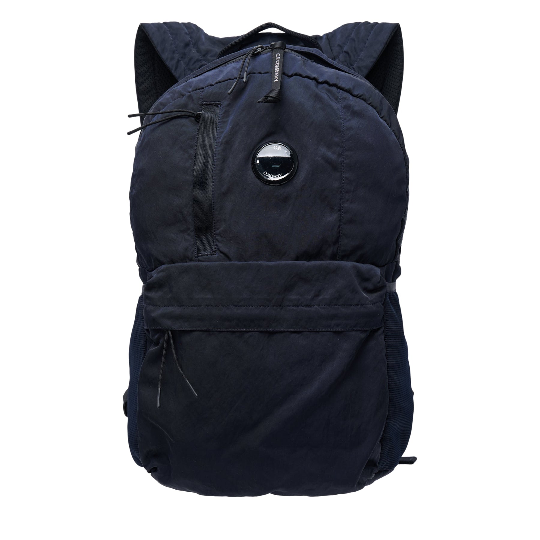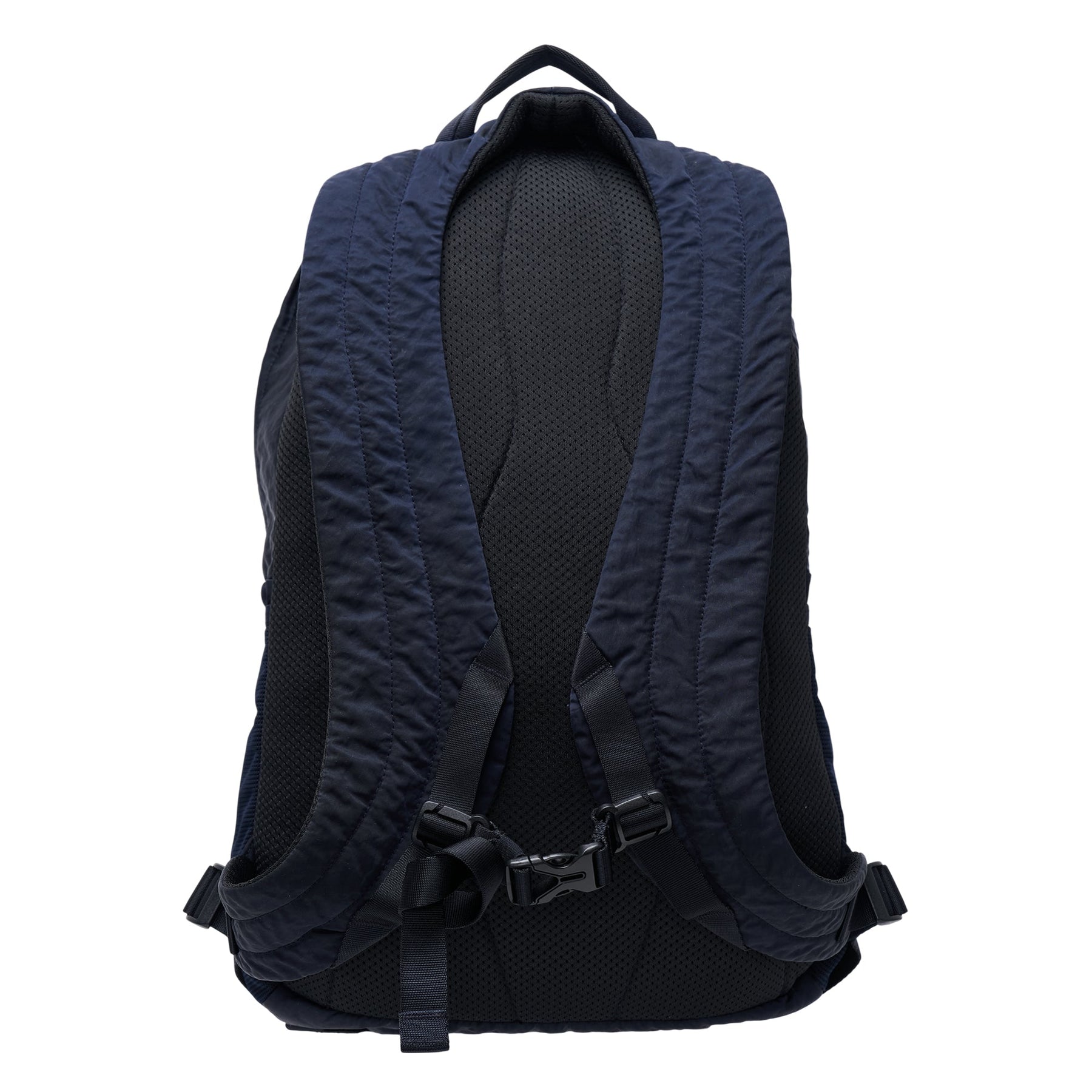 C.P. Company Nylon B Backpack delivers technical functionality with the brand's signature utilitarian design philosophy. Crafted from durable navy nylon with water-resistant properties, featuring the iconic lens detail and ergonomic construction for everyday use. The structured silhouette and premium hardware showcase C.P. Company's commitment to functional luxury accessories.