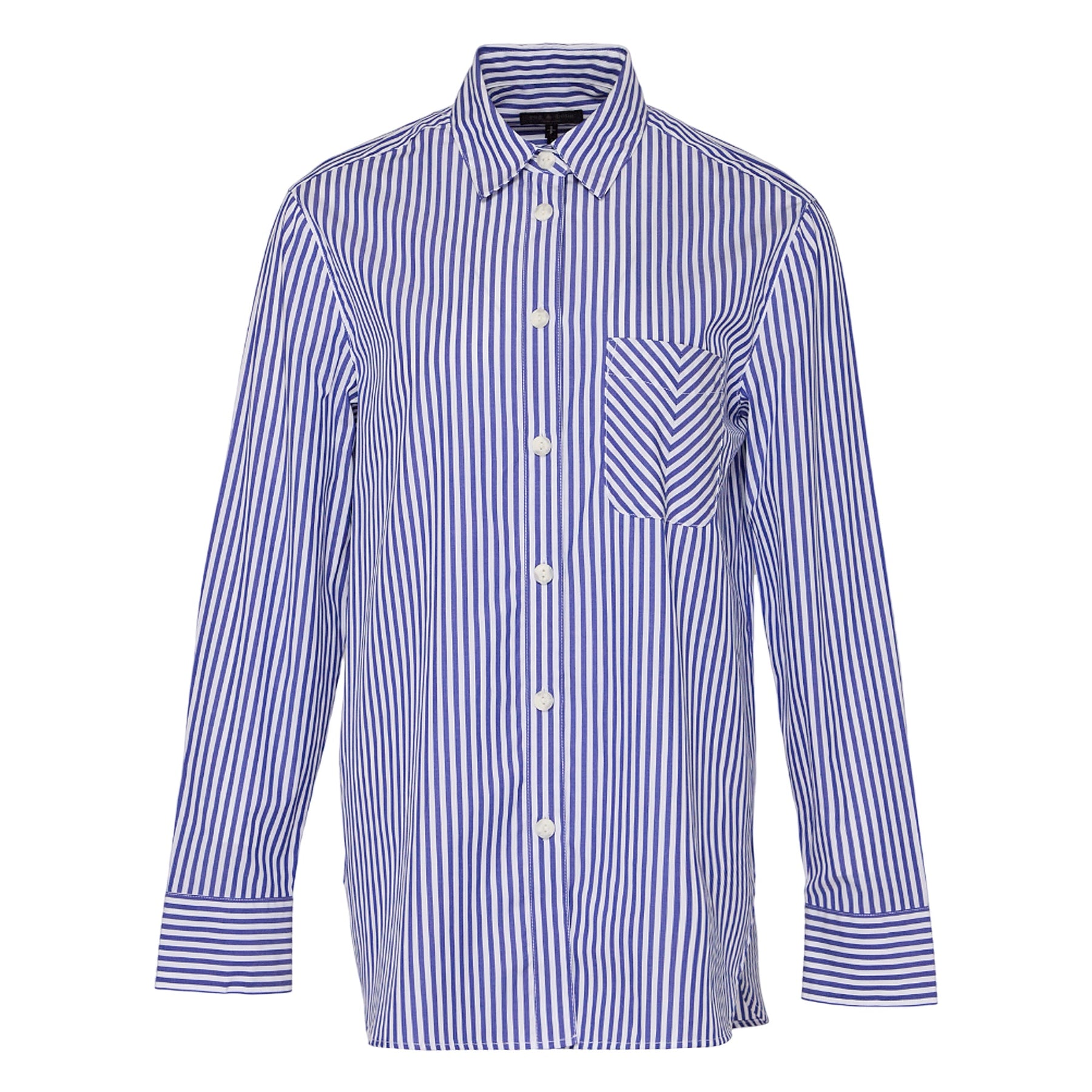 This Icon twill button-up shirt is a true wardrobe essential, both classic and perfect. It features banker stripes and V-shaped front pocket details, adding more dimension to the design, and offers a relaxed fit.