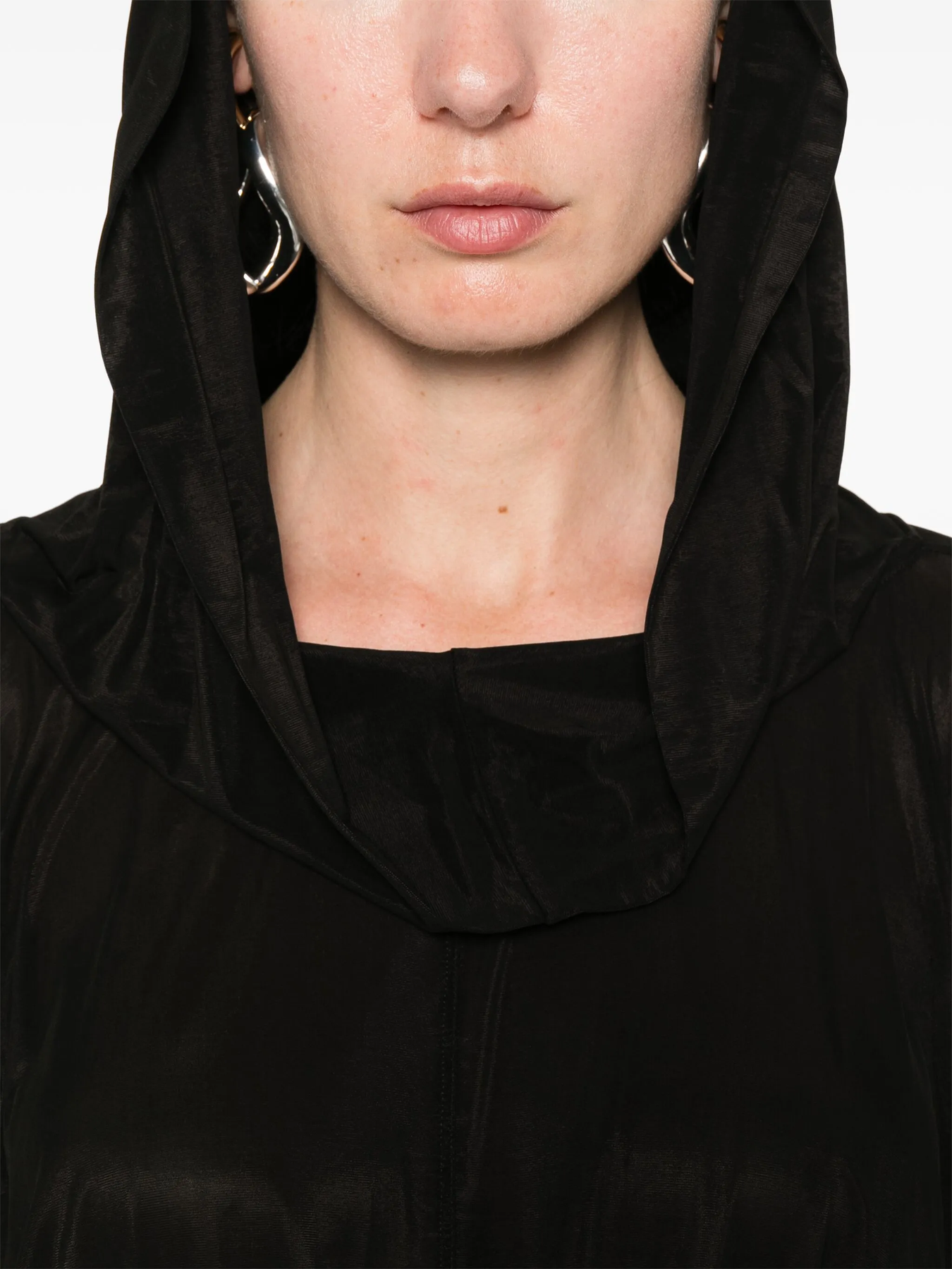 The Rick Owens Cropped Hooded Tunic is a distinctive piece from the designer's collection, known for its avant-garde aesthetic and luxurious materials.