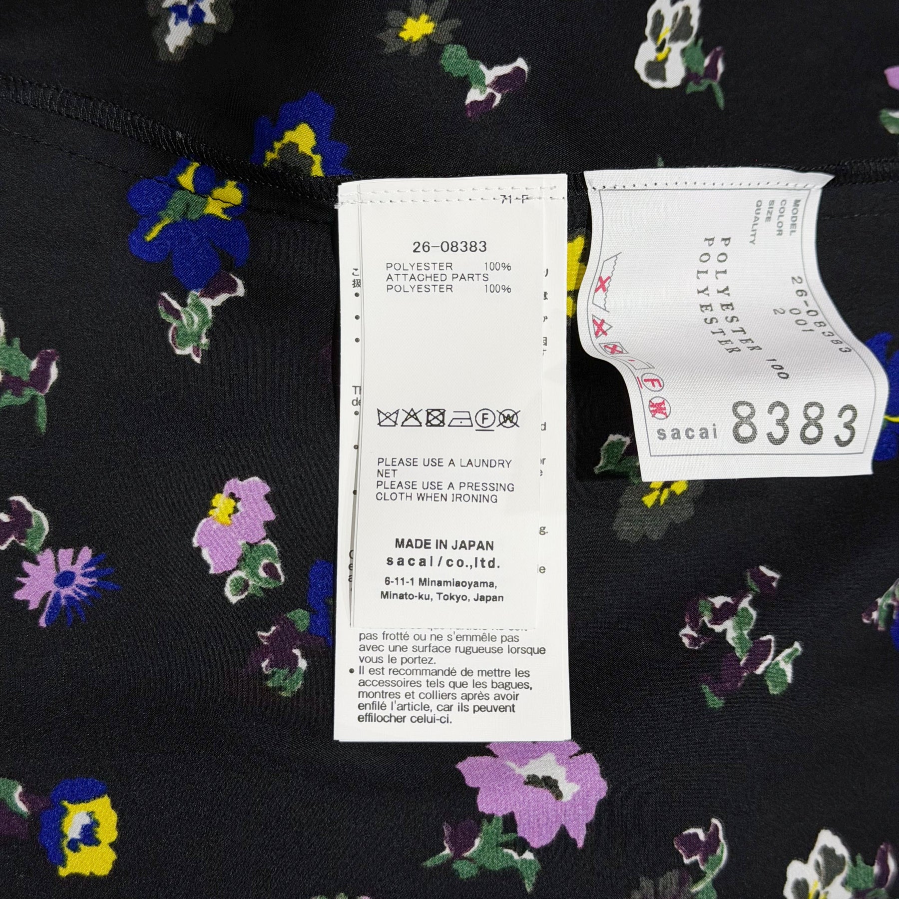 The sacai Floral Print Blouse delivers contemporary femininity with the brand's signature avant-garde tailoring and innovative construction. Crafted from lightweight semi-sheer fabric in black with delicate multicolored florals, featuring dramatic ruffled sleeves and architectural draping. The deconstructed silhouette and unexpected proportions showcase sacai's mastery of reimagined classics.