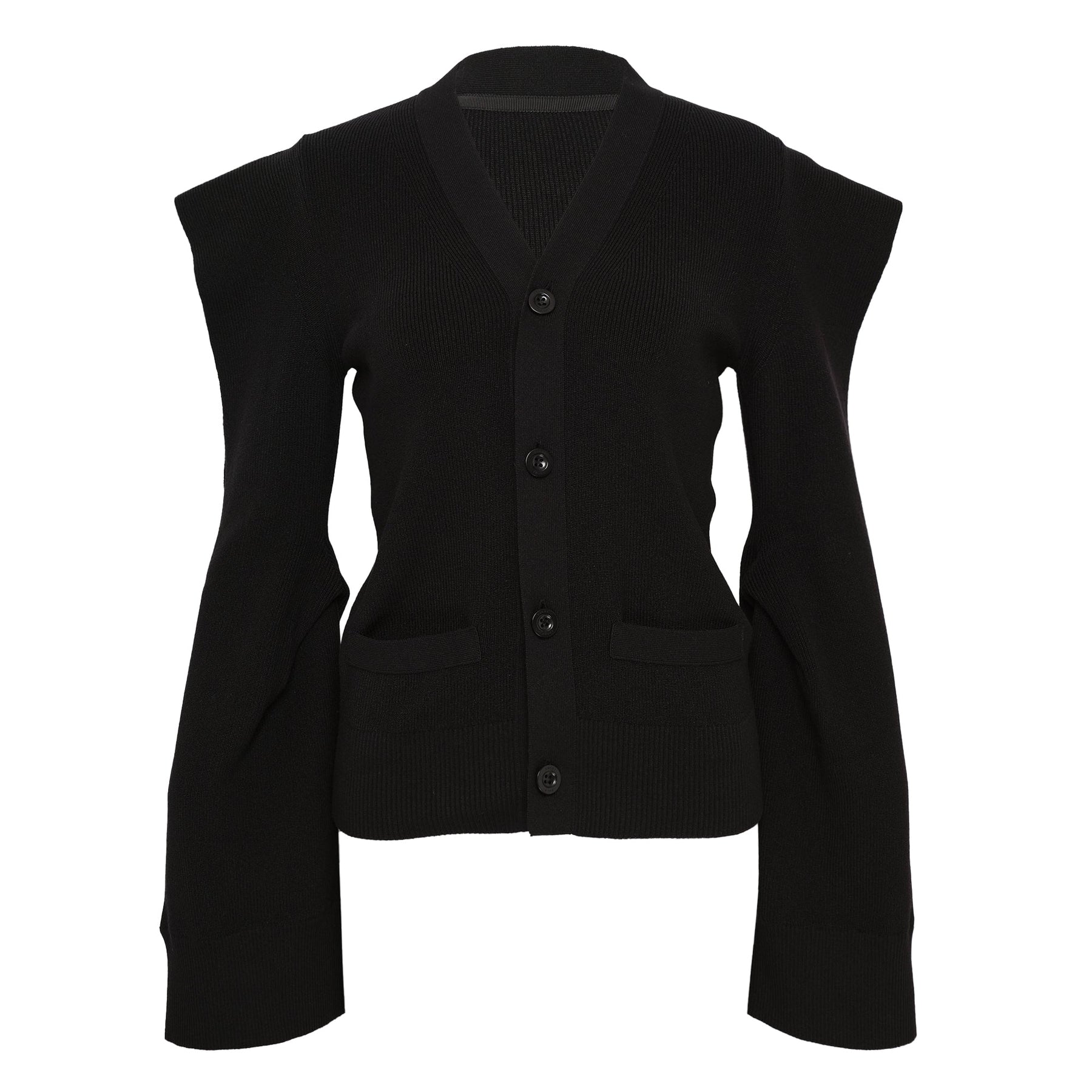 The sacai Knit Cardigan delivers avant-garde sophistication with architectural silhouette and innovative construction. Crafted from premium knit fabric in classic black, featuring a distinctive collar design and structured button closure. The signature sacai aesthetic combines traditional cardigan elements with contemporary Japanese tailoring for elevated everyday luxury.