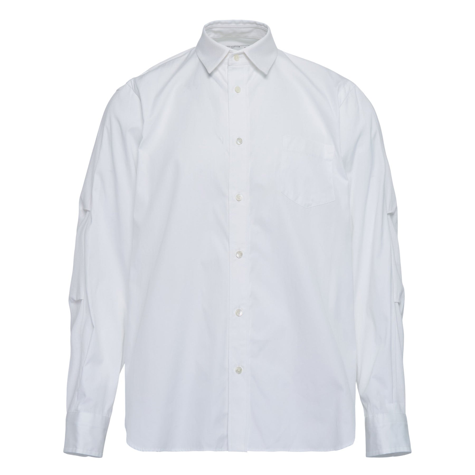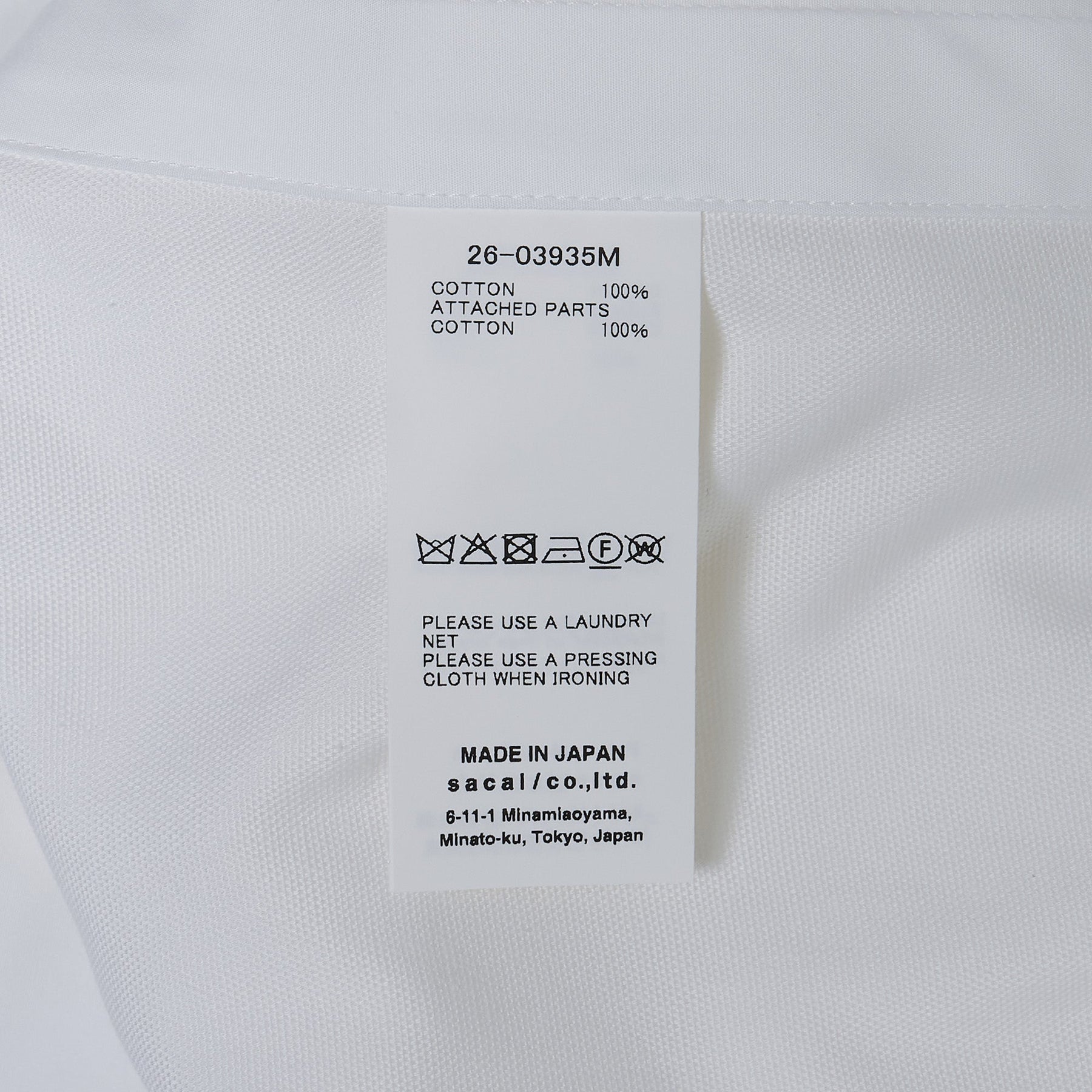 The sacai Poplin Shirt delivers Japanese avant-garde design with refined tailoring and contemporary sophistication. Crafted from premium cotton poplin in crisp white, featuring the brand's signature clean lines and architectural construction. The structured silhouette and minimalist aesthetic create a versatile foundation piece for modern wardrobes.