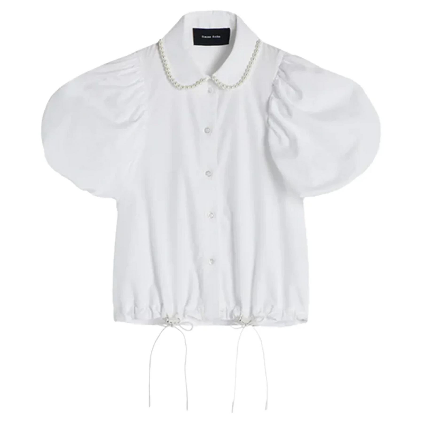 Toggle Detailed Puff Sleeve Cropped Shirt