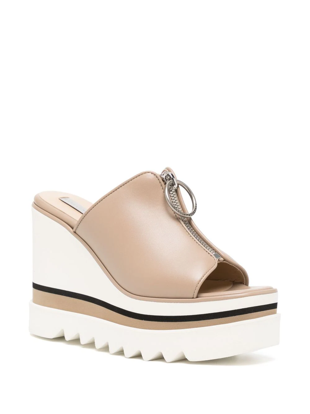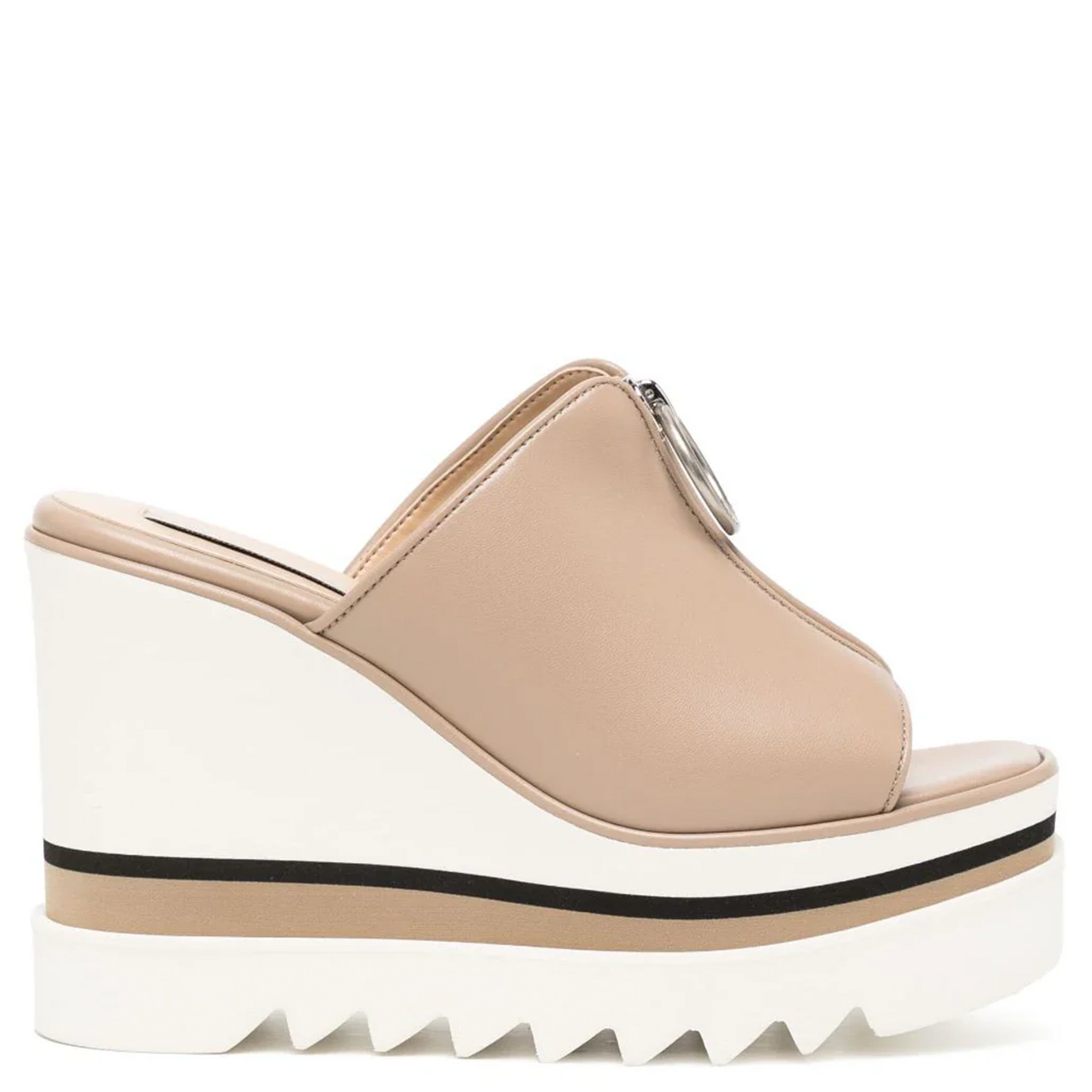 Draw together seasonal sets with these Sneak-Elyse slide wedges from Stella McCartney. The wedges are crafted from our water-based Alter Mat vegan alternative to animal leather upper made with recycled polyester, with a screen-printed logo, on our signature saw-edge micro sole.