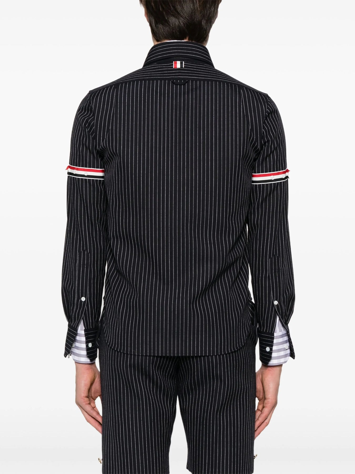 Club21 - Thom Browne - Pinstripe High Twist Wool Zip Up Shirt Men - SHIRTS - Navy