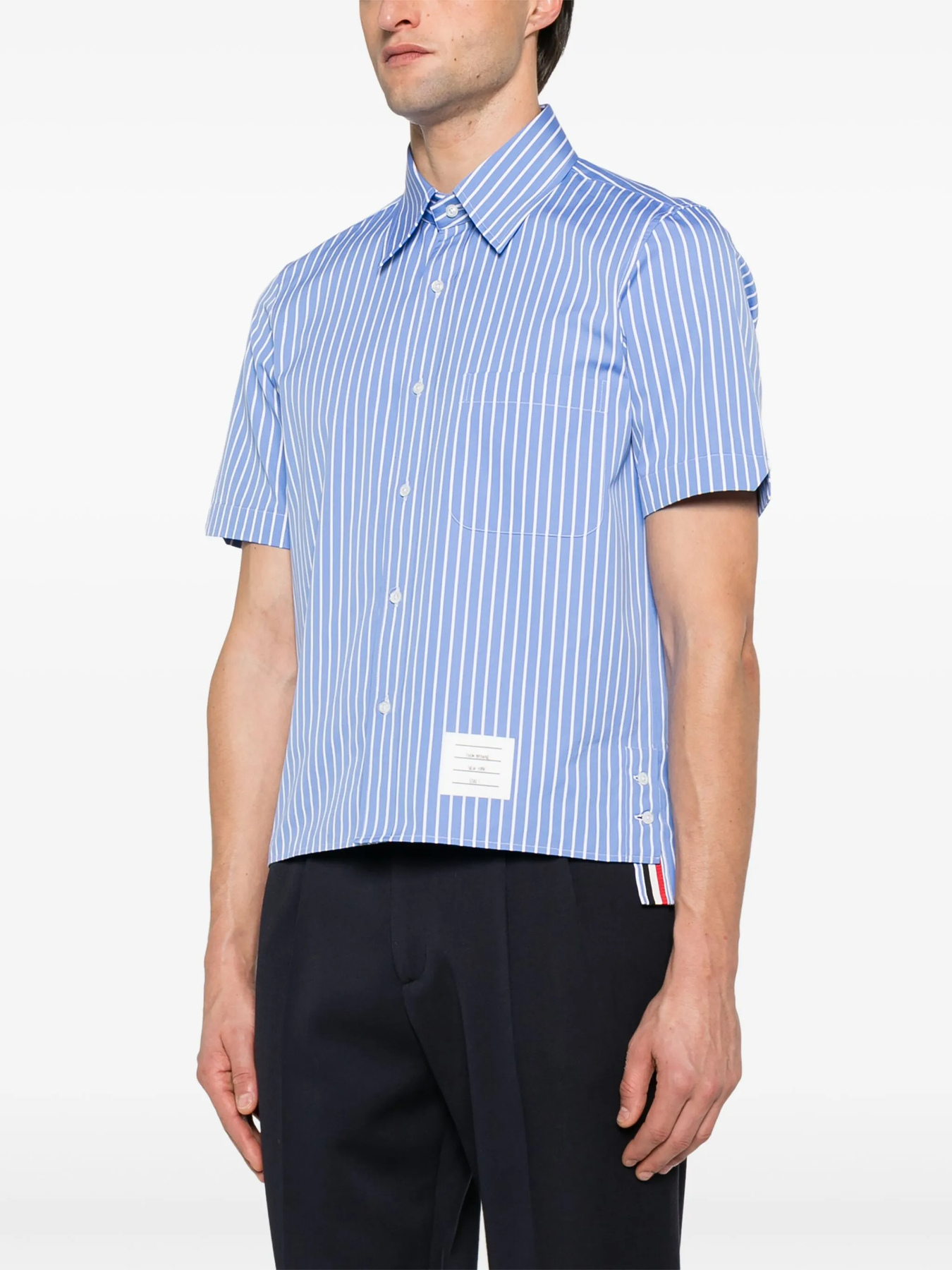Inspired by 19th-century work uniforms, this meticulously tailored cotton shirt is adorned with preppy pinstripes and signature Thom Browne emblems. Pair it with our matching poplin shorts.