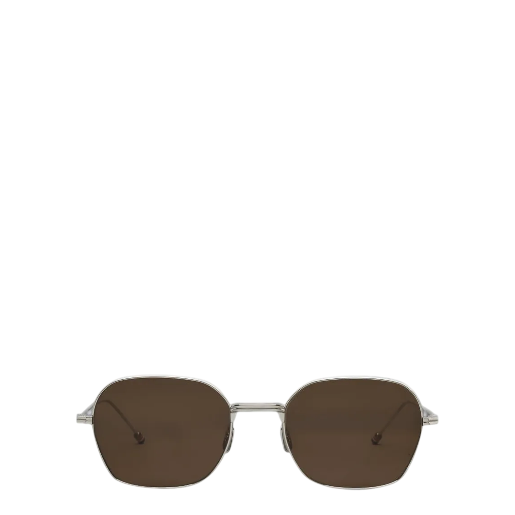 Thom Browne Rectangular Sunglasses deliver sophisticated eyewear with the brand's signature refined aesthetic and superior optical quality. Crafted with lightweight titanium frames in polished silver finish, featuring premium dark brown lenses with UV protection. The clean rectangular silhouette and minimalist construction exemplify Thom Browne's commitment to timeless luxury accessories.