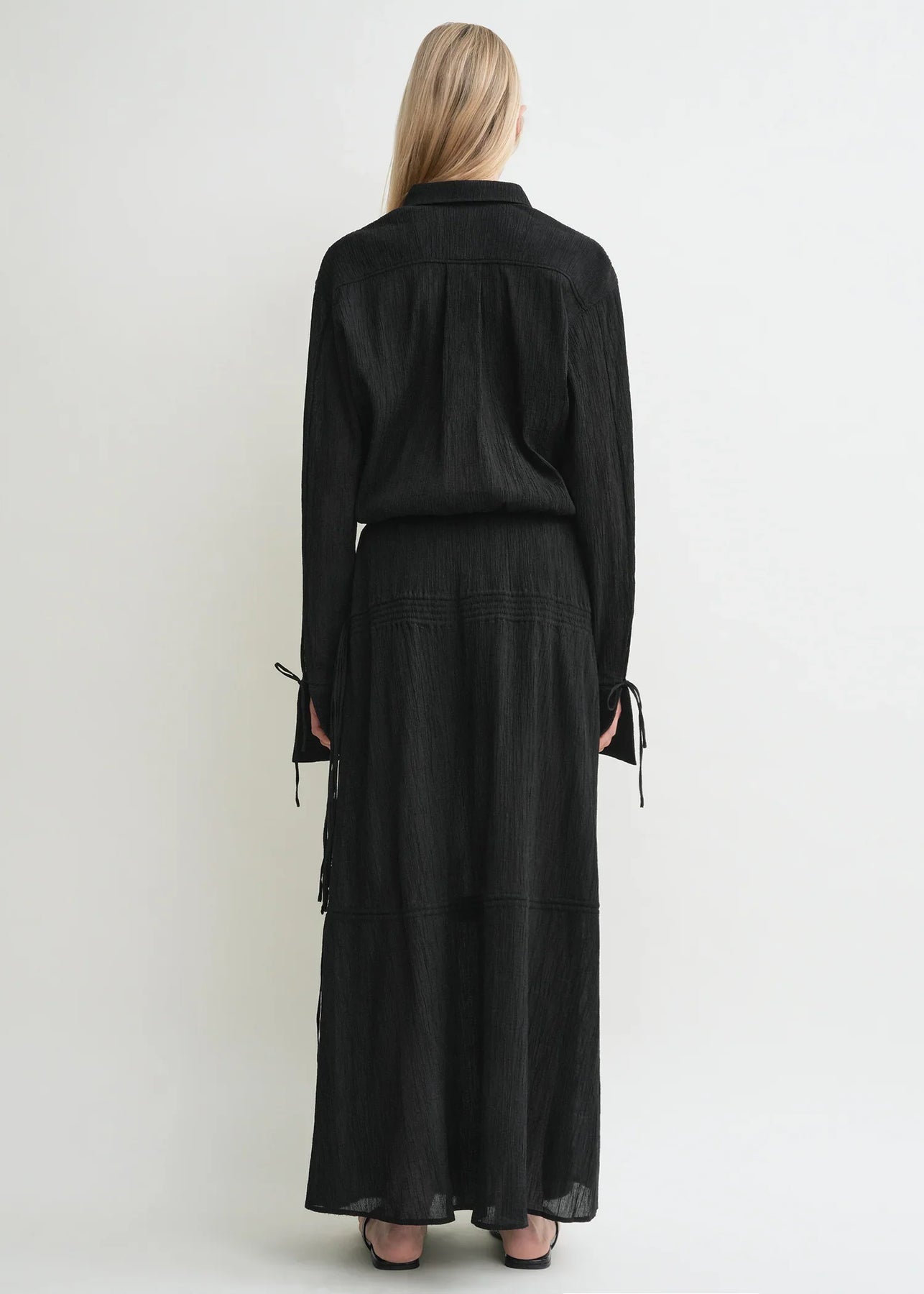 TOTEME shirt decorated with drawstrings at the waist and cuffs to create a voluminous silhouette. It is made from crinkled organic cotton and fastens with tonal buttons. Enhance the bohemian mood with the matching skirt.