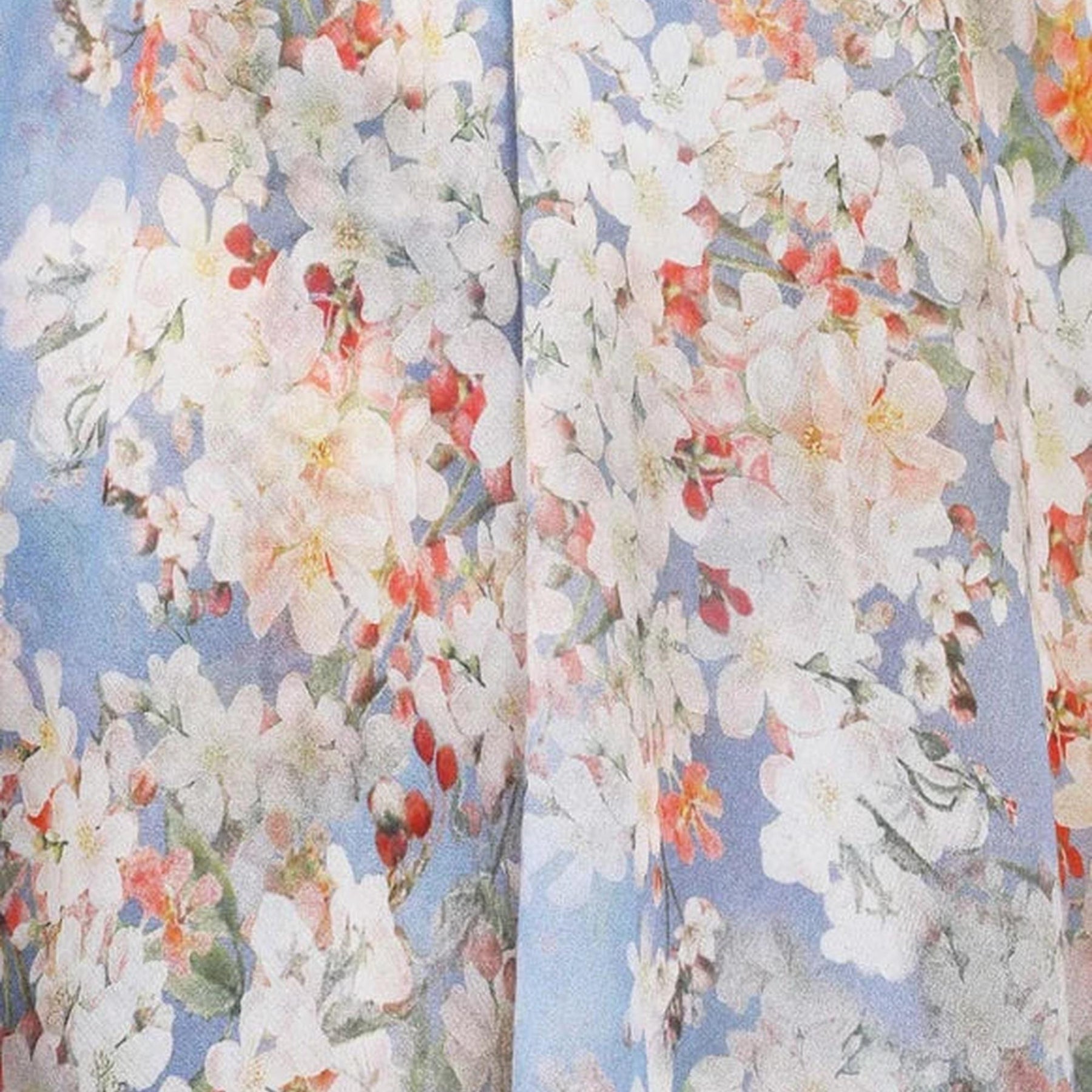 The Cascadian Tiered Maxi Dress in Teal Blue Botanical Floral from our Summer Swim 2025 Collection. A silk maxi dress featuring a boat neckline, removable waist tie and loose sleeves, finished with a tiered ruffle detailing.