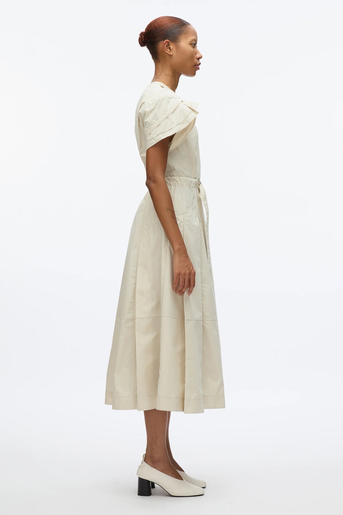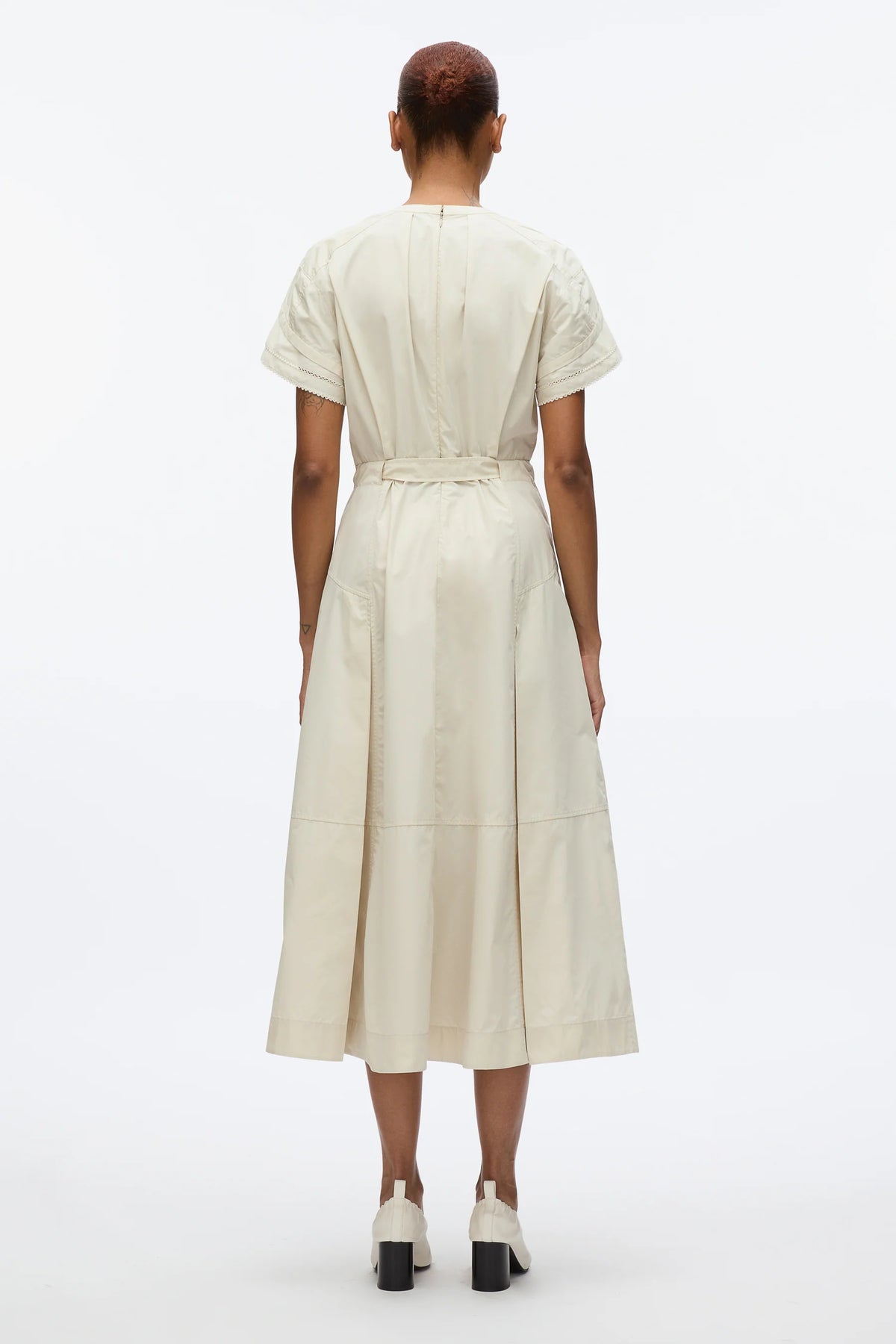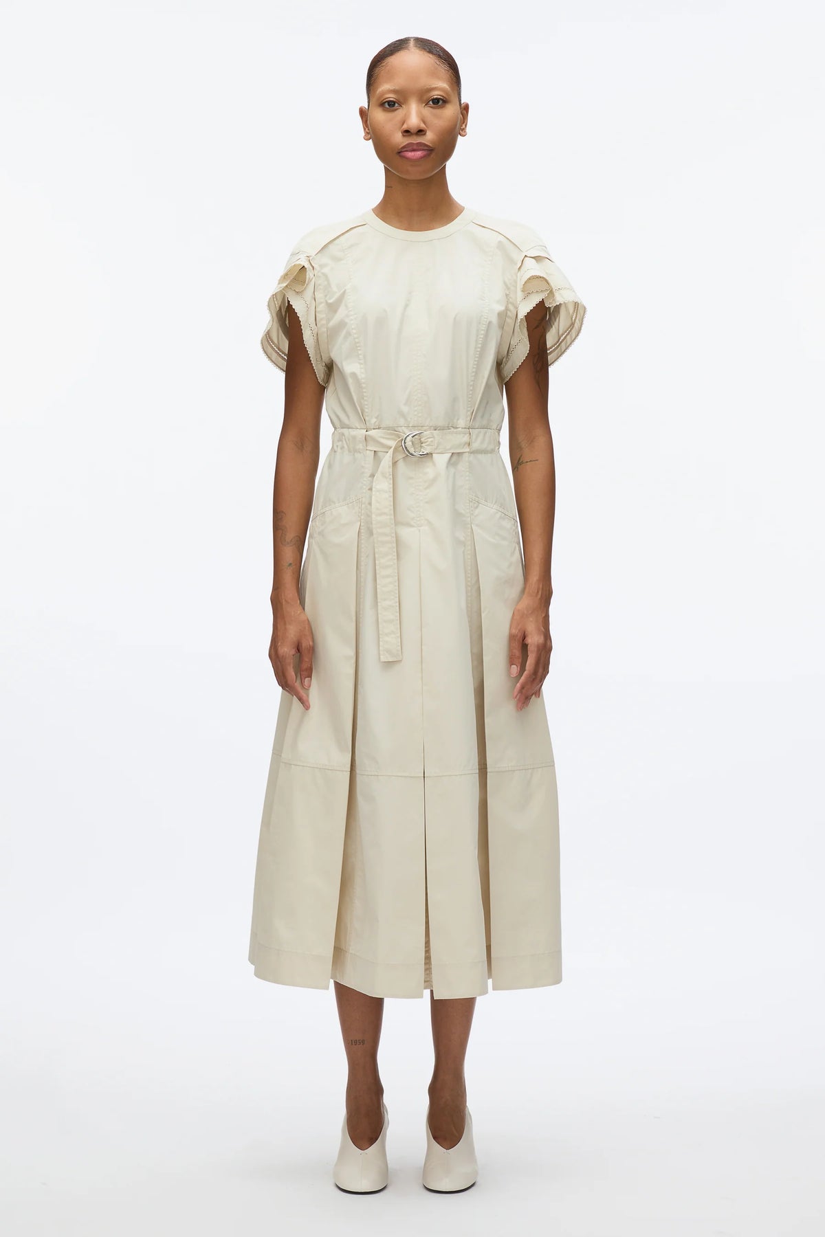 Embodying our core DNA of romantic utility, this flattering dress combines cascading petal sleeves with a crisp pleated skirt for a captivating silhouette. Cut from our signature technical poplin and accented with scalloped-edge embroidery, it's finished with an-ring belt for a refined touch. Designed for everyday ease, yet perfect for occasion dressing with a laid-back spirit.