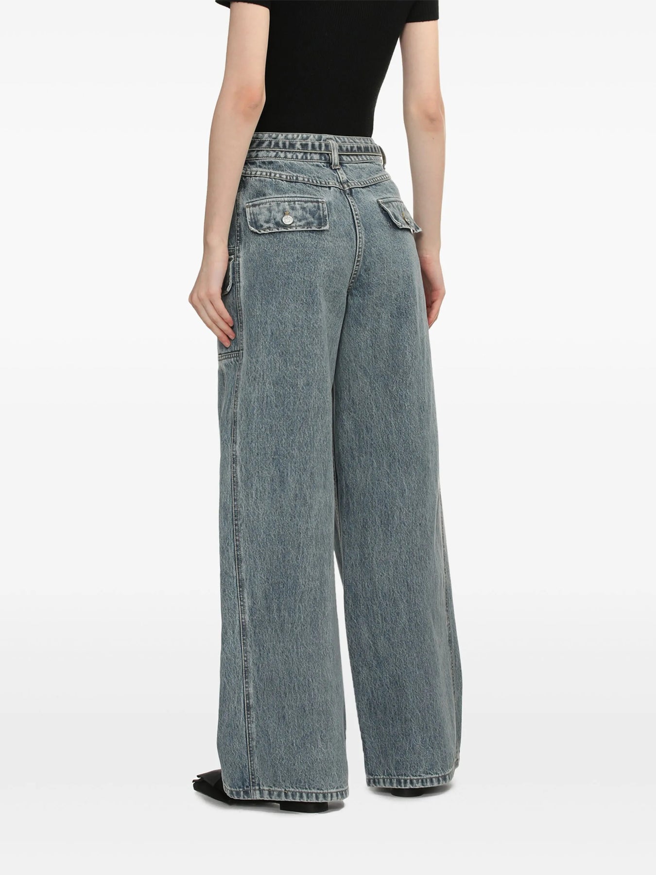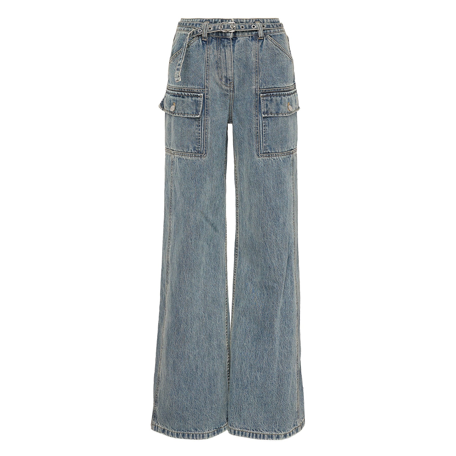 Our reinterpretation of the New York uniform pragmatic yet playful. These wide-leg jeans are designed to elongate the silhouette, blending functionality with a modern edge. Detailed with cargo pockets and finished with our signature hardware belt, they pair pefectly with the East Village Blue wash, making them the perfect go-to for a cool, everyday look.