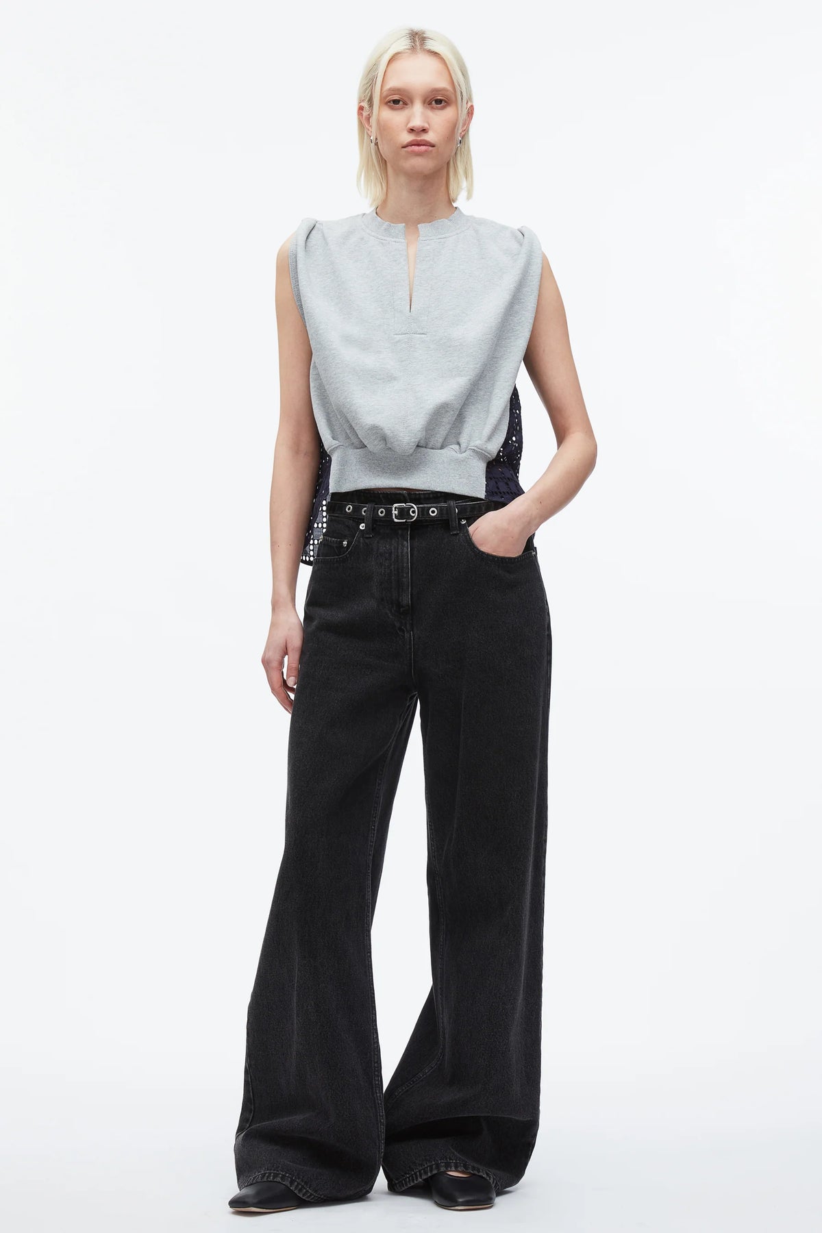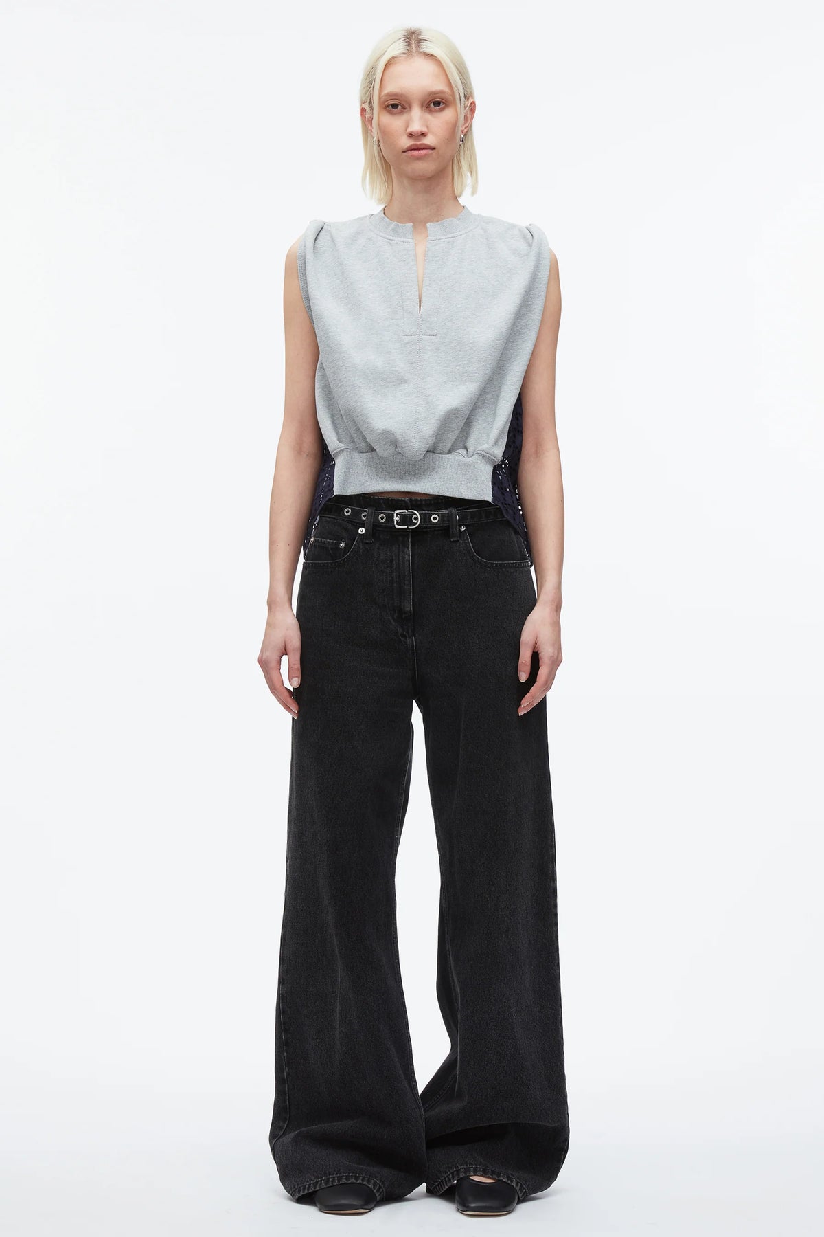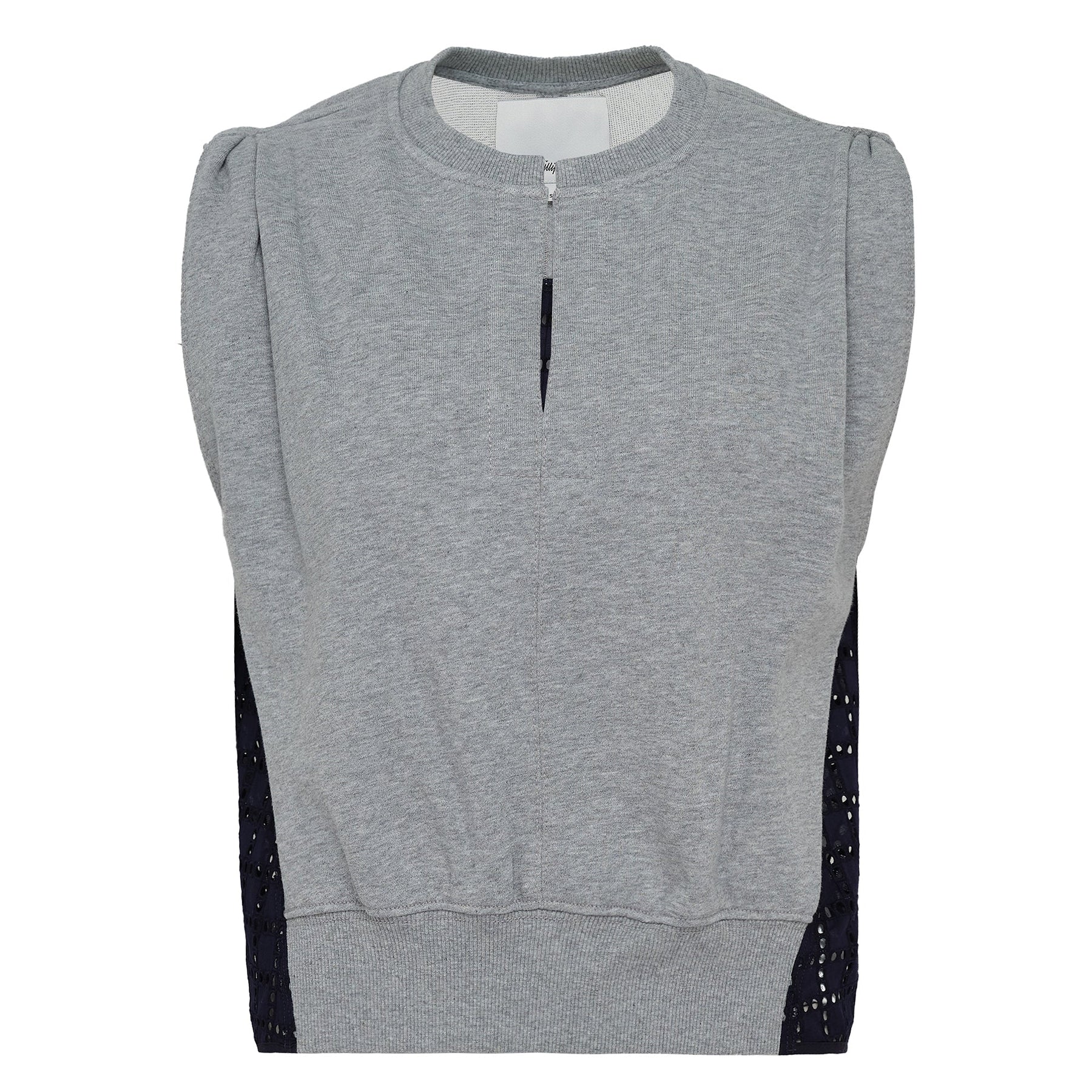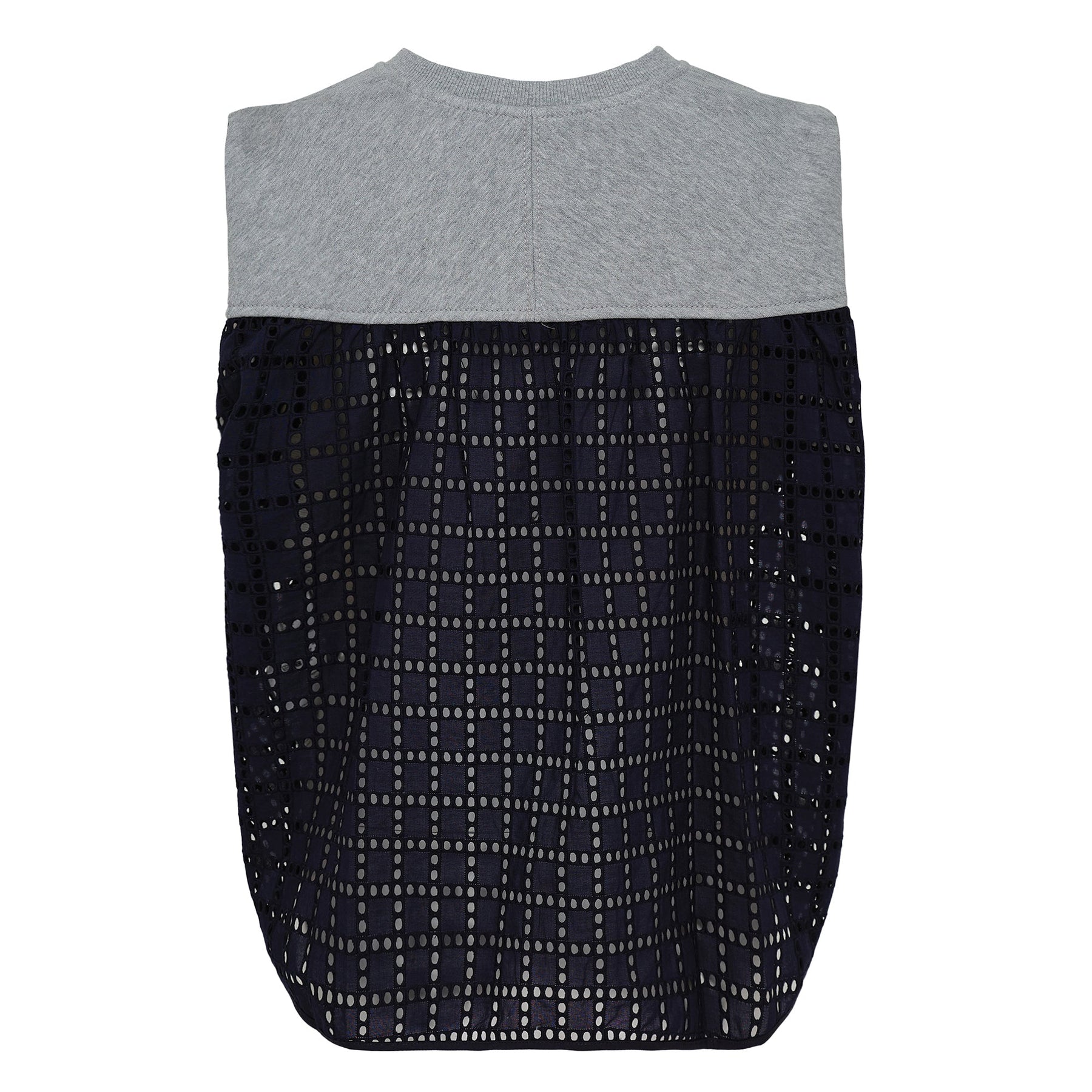 Our take on modern femininity is a study in contrasts, perfectly captured in this elevated approach to casual dressing. This sleeveless French terry top features a contrasting broderie anglaise back, infusing a delicate, airy texture into effortless dressing. A soft twist detail at the shoulders adds a flattering flourish, balancing ease with elegance. Style it with our wide-leg belted denim for an effortlessly polished, on-the-go look.