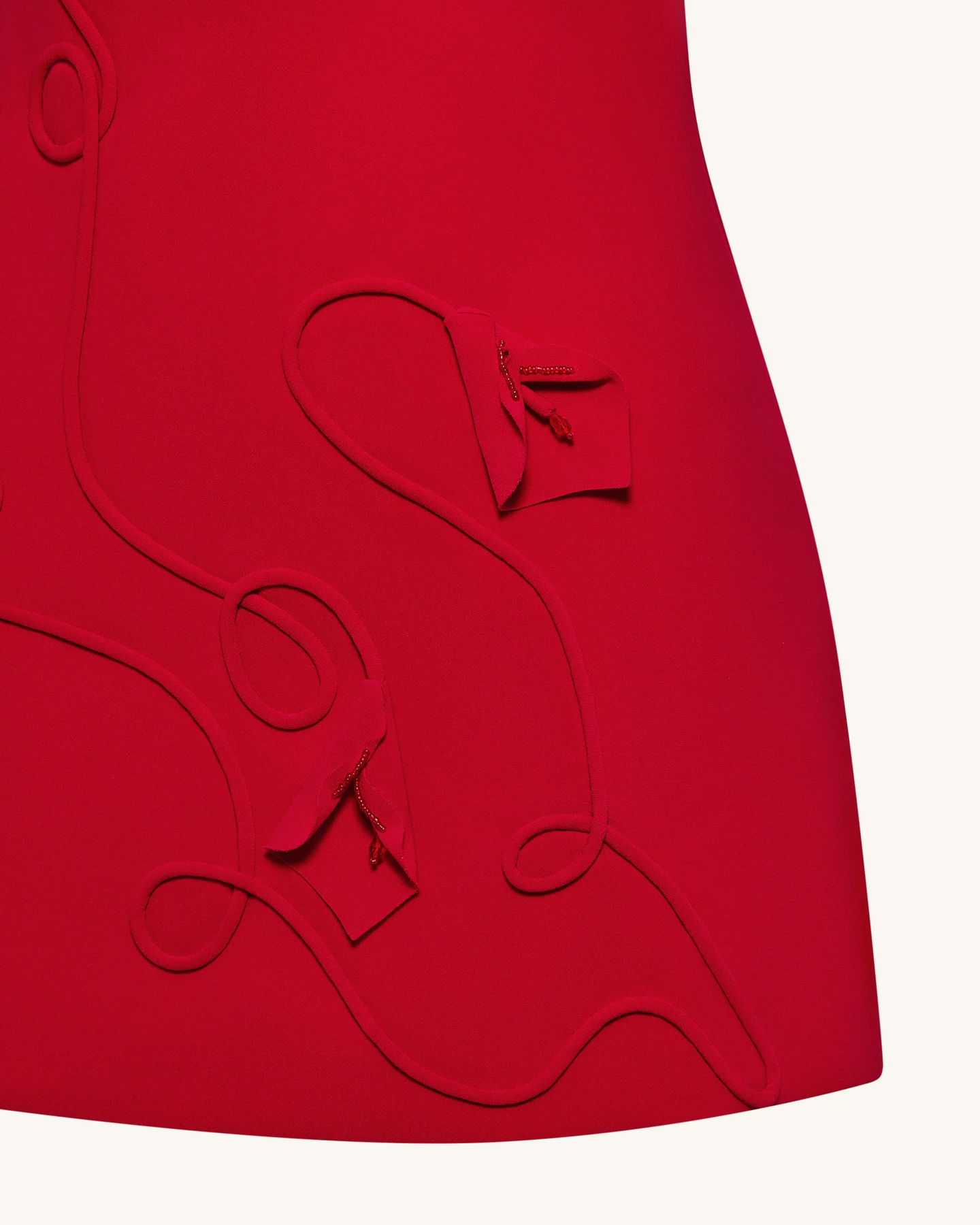 JW PEI 3D Floral-Applique Sheath Mini Dress delivers contemporary femininity with dimensional floral detailing and sleek silhouette. Crafted in vibrant red fabric with intricate 3D applique florals that create texture and visual interest throughout the fitted bodice and A-line hem. The sleeveless design and mini length offer modern sophistication perfect for special occasions and evening events.