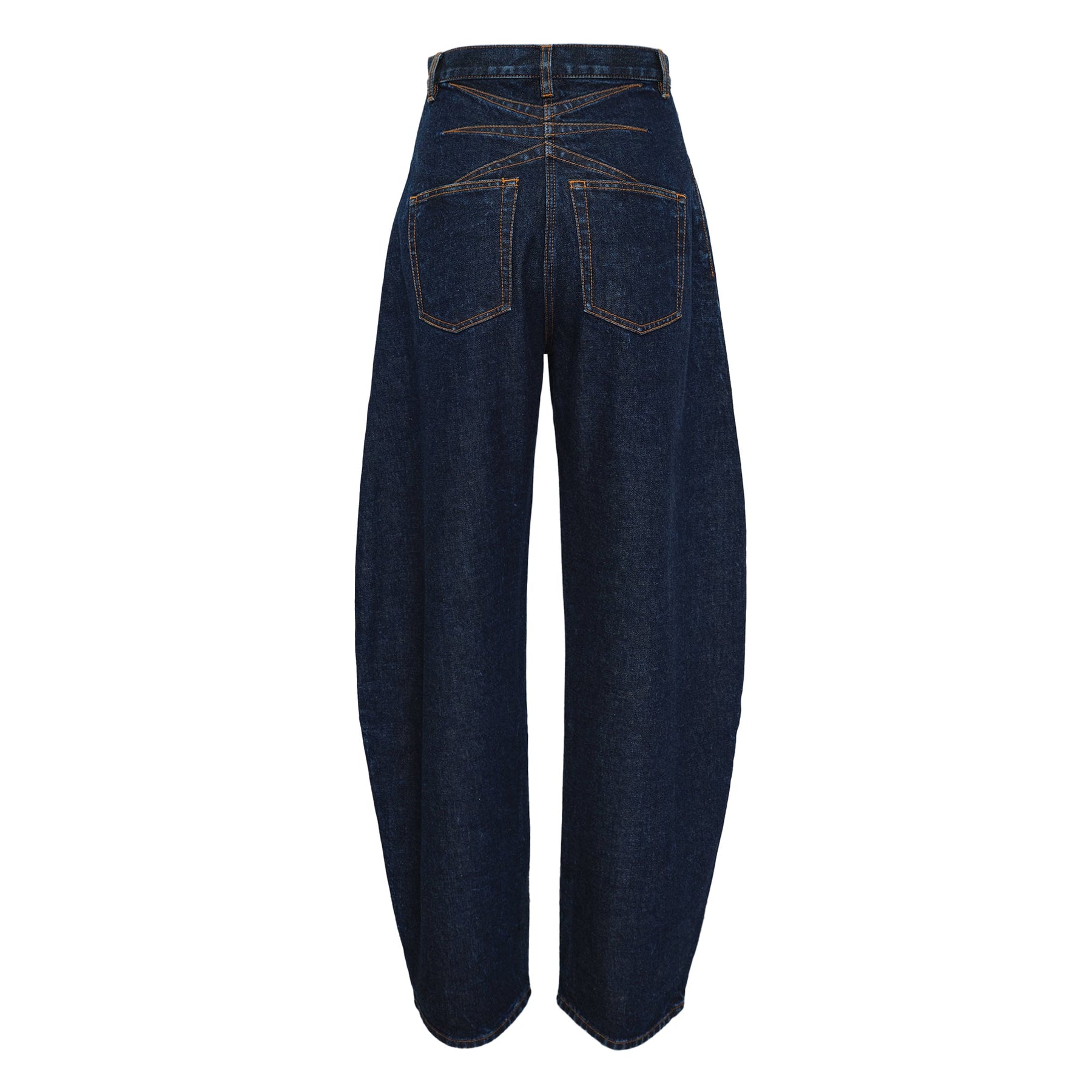 ALAIA Round Pants Denim delivers avant-garde luxury with an architecturally rounded silhouette that redefines contemporary denim. Crafted from premium indigo denim with precise construction and signature Parisian couture detailing throughout. The innovative balloon-shaped design creates a bold sculptural statement while maintaining sophisticated wearability.