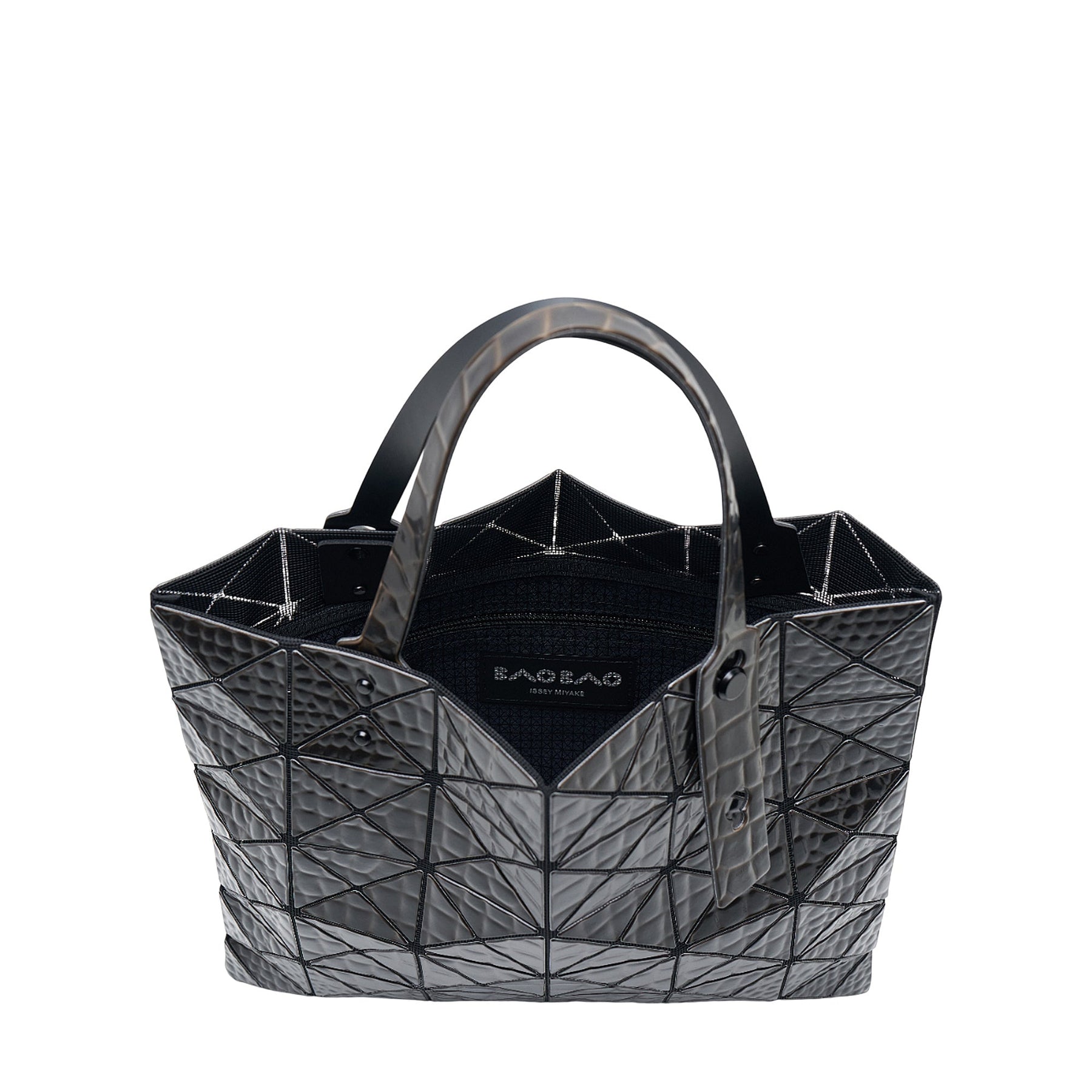 This playful tote bag has a texture reminiscent of a kaiju monster, which is achieved using a three-dimensional embossed material. The bumpy unevenness of the triangular pieces subtly expresses the shading of the colors. The bag is the perfect size for holding A4-sized documents and a 13-inch laptop. It also has an inside zippered pocket convenient for storing valuables such as your wallet and keys.