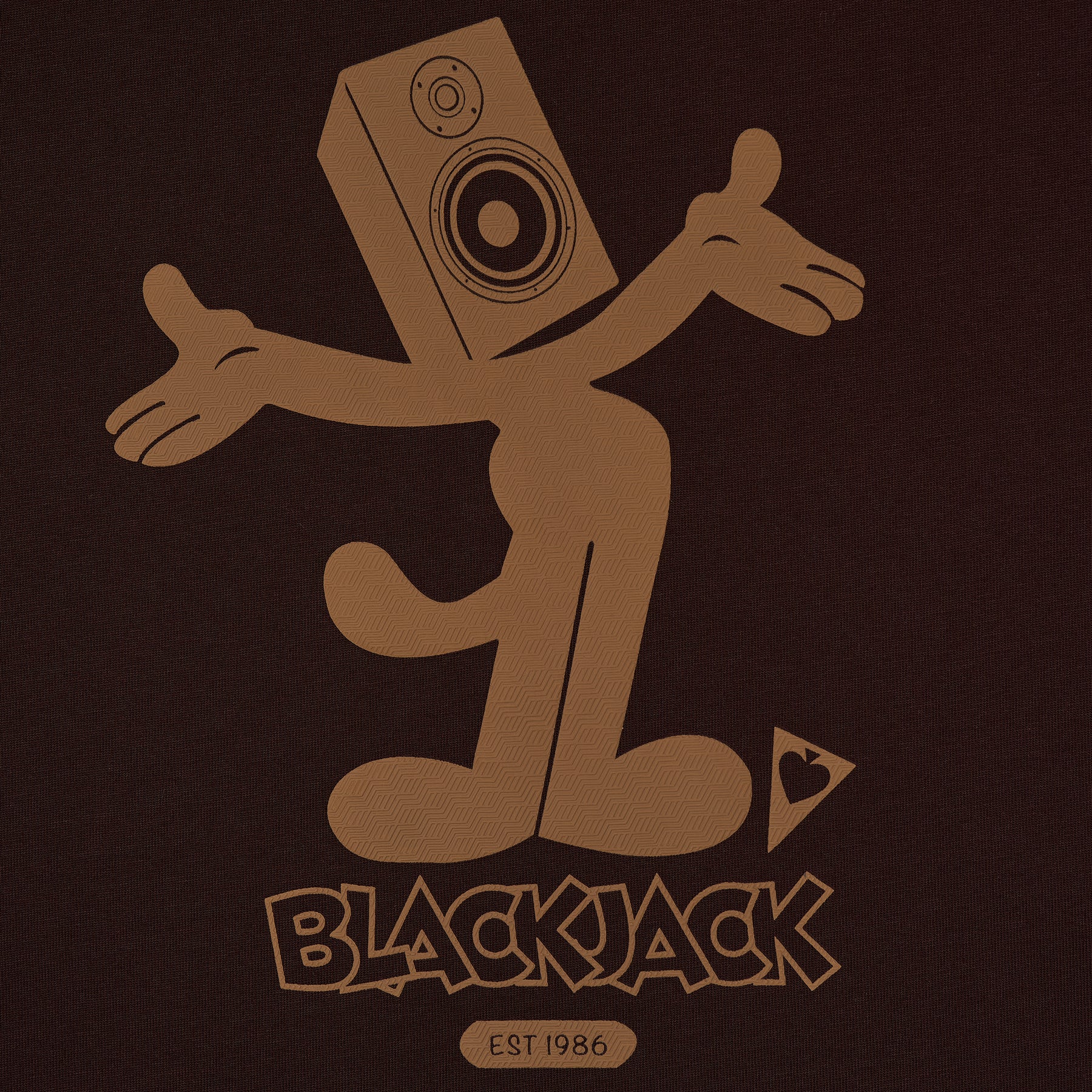 The Blackjack Beathead Tee delivers music-inspired streetwear with bold graphic storytelling and premium construction. Crafted from soft cotton jersey in rich brown, featuring the signature dancing speaker character with musical notes. The playful graphic celebrates the brand's established heritage since 1986 with contemporary street style appeal.