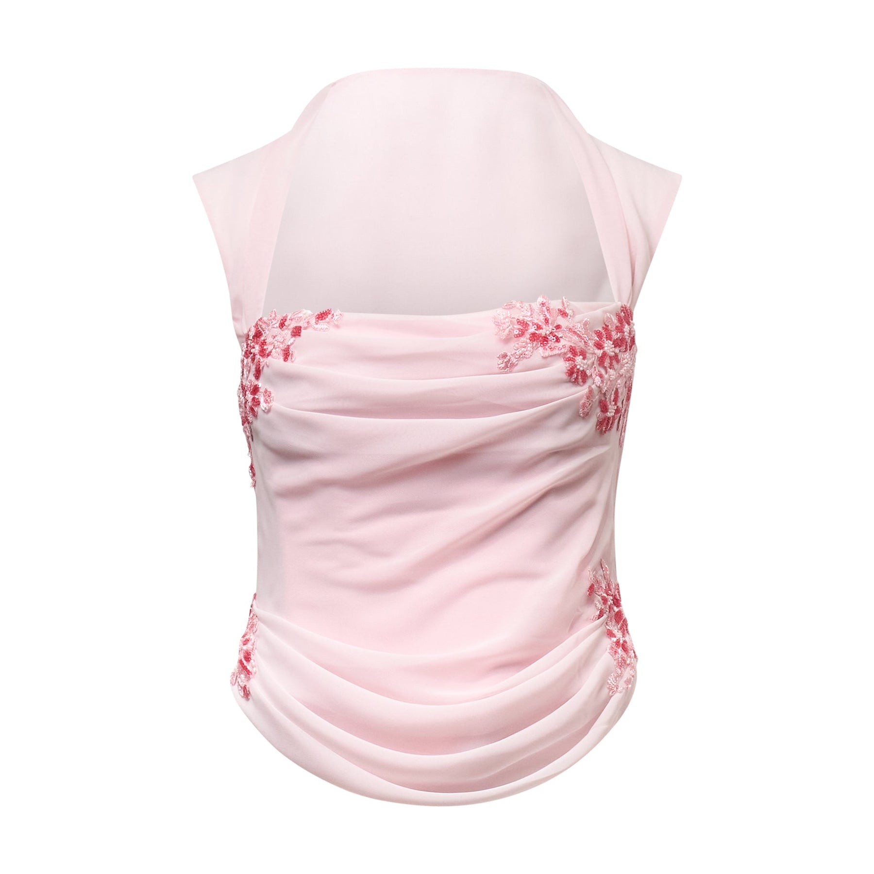 Stolen Stores Belle Draped Lace Corset delivers feminine elegance with romantic draping and intricate lace detailing. Crafted from soft blush pink fabric with delicate floral lace appliqués, featuring draped construction that creates flattering silhouette lines. The strapless design and draped bodice showcase the brand's signature romantic aesthetic perfect for special occasions.
