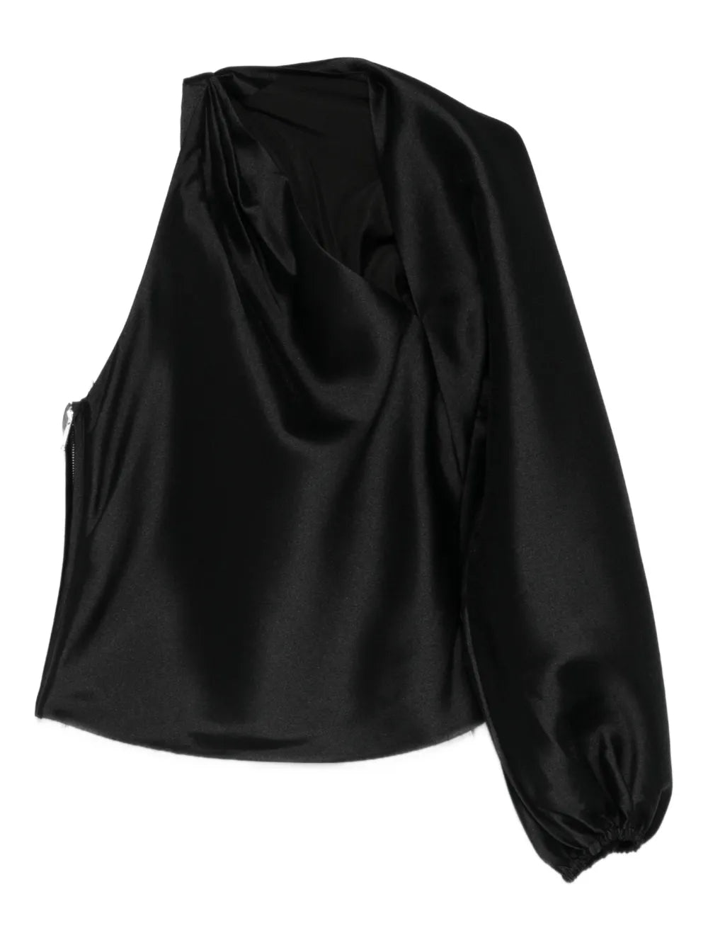 Self-Portrait Black Taffeta Draped Sleeve Top delivers contemporary elegance with statement asymmetrical design. Crafted from premium taffeta fabric in classic black, featuring an innovative one-shoulder silhouette with dramatic draped detailing. The structured taffeta construction and sculptural sleeve create a bold evening piece with the brand's signature modern femininity.