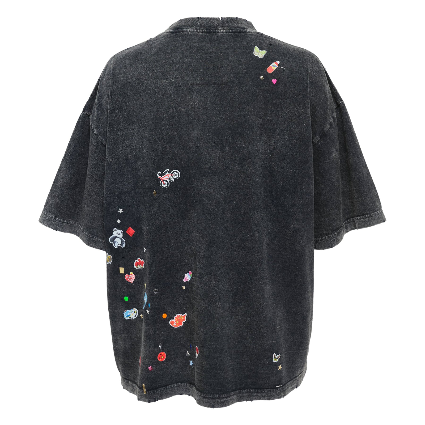 MIHARA YASUHIRO Bleached Kids Sticker Tee delivers avant-garde streetwear with playful graphic elements and vintage-inspired construction. Crafted from premium cotton with acid-wash bleached treatment, featuring colorful patch stickers scattered across the oversized silhouette. The deconstructed aesthetic and whimsical detailing create a unique statement piece that embodies the brand's experimental design philosophy.