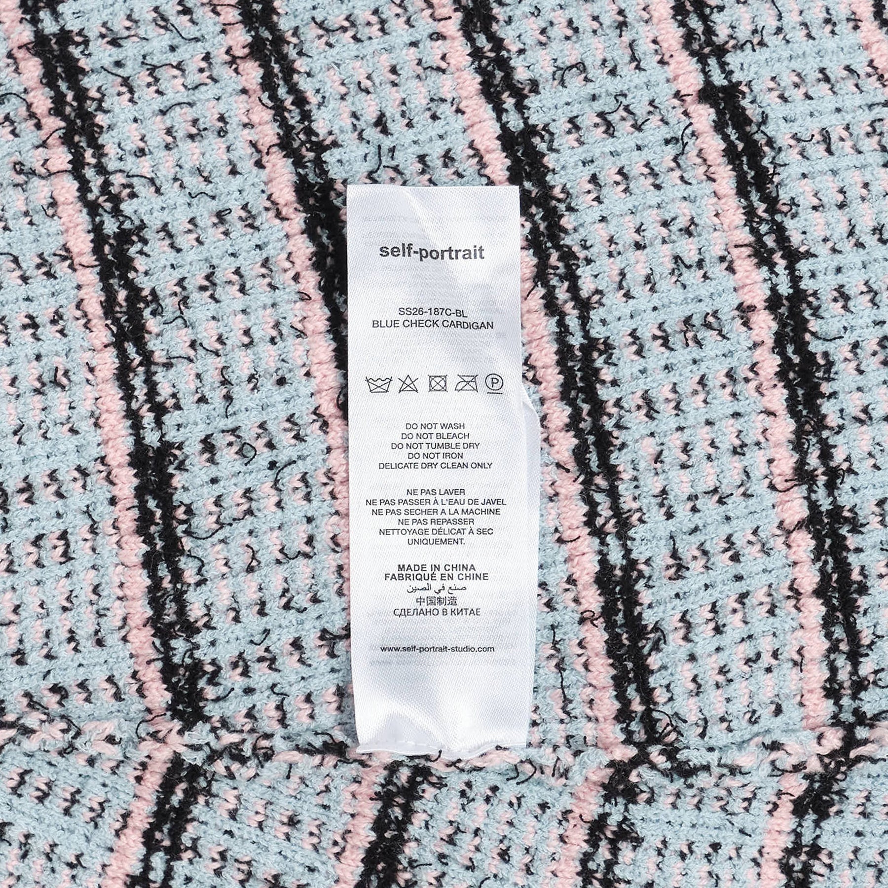 The Self-Portrait Blue Check Cardigan delivers contemporary femininity with structured tweed sophistication. Crafted from premium bouclé fabric in powder blue check pattern, featuring pearl-inspired button details and cropped silhouette. The textured weave and signature Self-Portrait embellishments create an elegant statement piece for modern wardrobes.