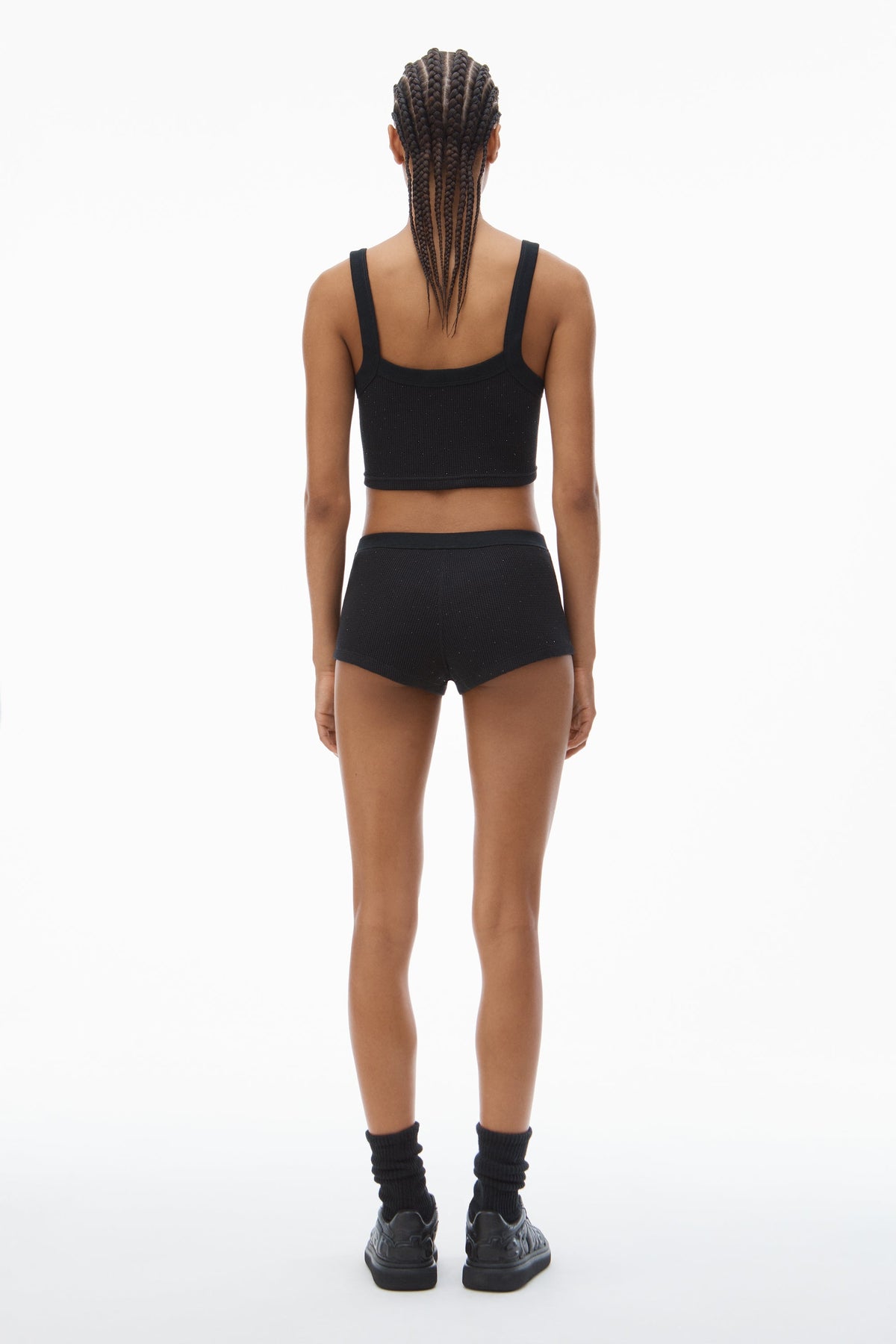Club21 - Bodywear by Alexander Wang - Waffle Knit Crystal Rhinestone Shorts - UNDERWEAR - Black
