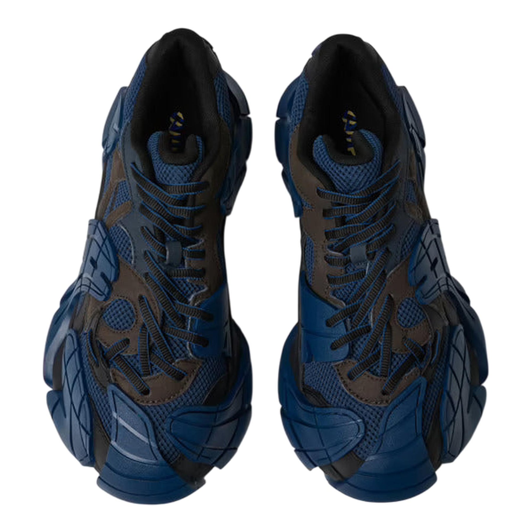 Blue and gray-black sneakers with Sorona mesh, HyphaLite and MIRUM uppers, TENCEL Lyocell laces, OrthoLite Recycled footbeds and rubber & EVA outsoles.