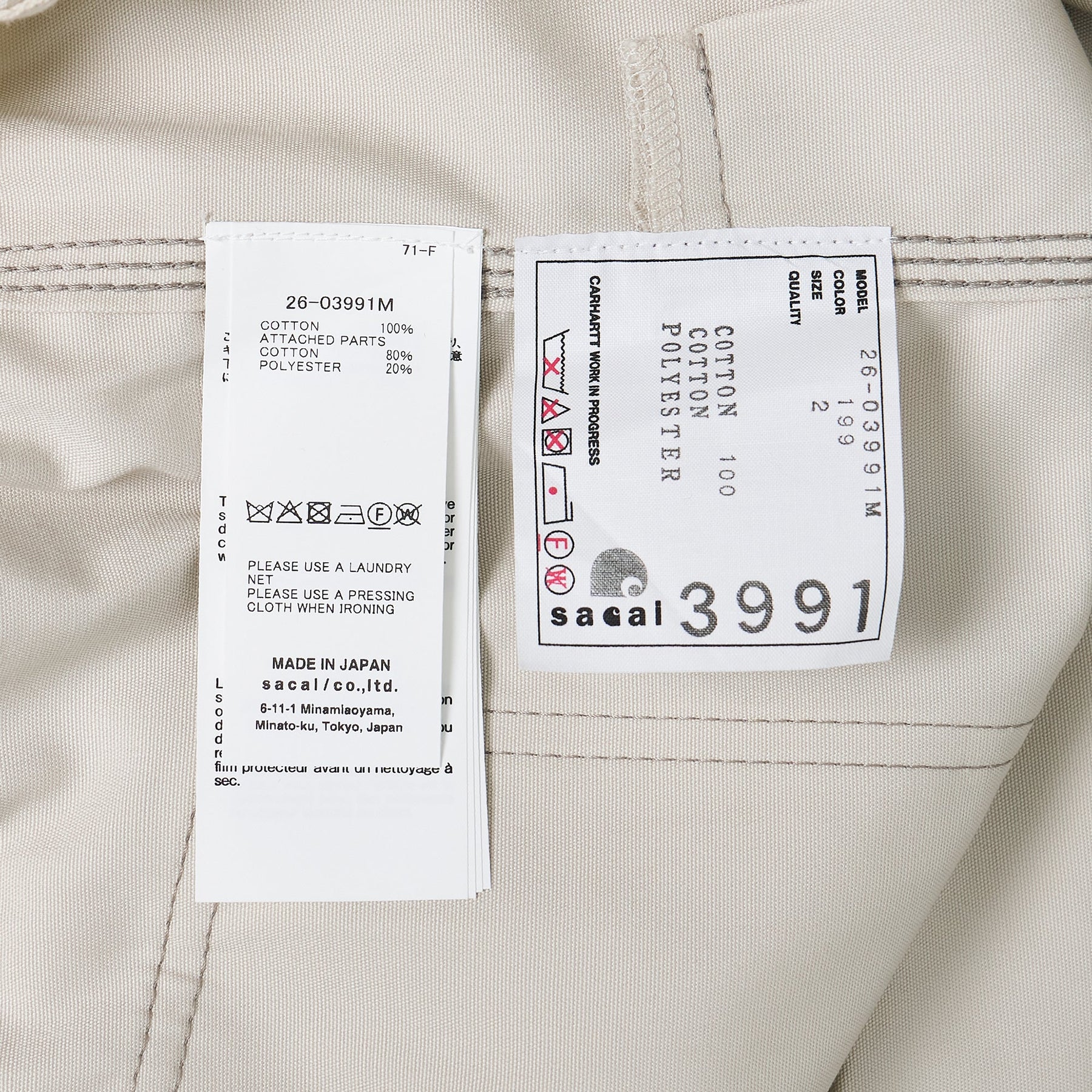 The sacai x Carhartt WIP Duck Shirt delivers workwear-inspired functionality with Japanese design innovation through this exclusive collaboration. Crafted from durable cotton duck canvas in light stone colorway, featuring contrast corduroy collar and signature golden hardware detailing. The hybrid construction combines sacai's deconstructed aesthetic with Carhartt WIP's utilitarian heritage for a contemporary statement piece.