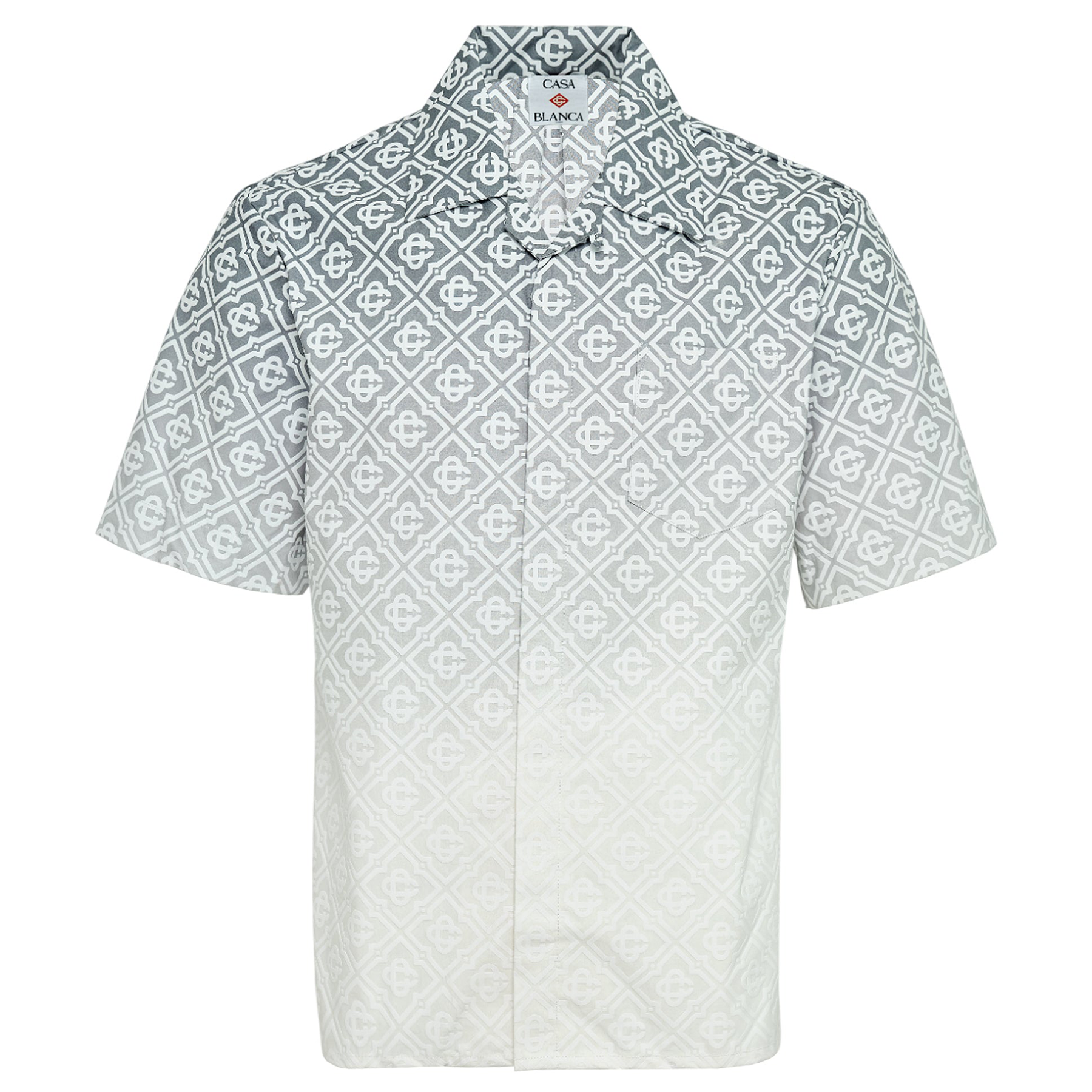 The monogram gradient shirt is a short-sleeve printed design with a classic silhouette crafted from a monogram gradient cotton blend fabric featuring the house's signature diamond monogram. Completed with a button closure, a breast pocket, and a Cuban collar.