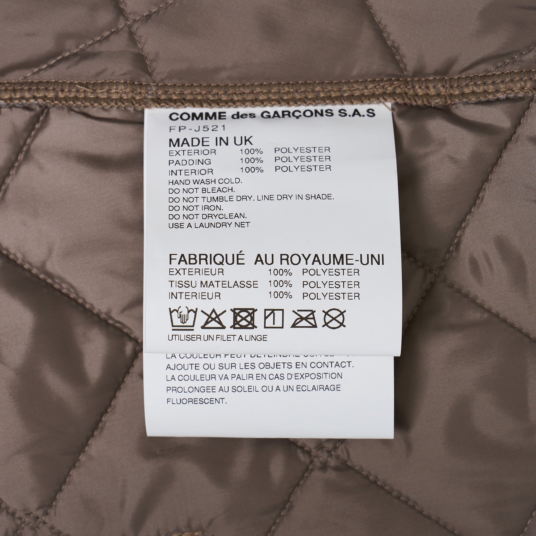 The COMME des GARCONS SHIRT x Lavenham Bias Hoodie delivers avant-garde streetwear through an innovative collaboration with British heritage outerwear specialists. Crafted from quilted nylon with signature diamond stitching, featuring an asymmetrical cut with vibrant postcard print panel contrasting neutral tones. The hybrid design merges CDG SHIRT's deconstructed aesthetic with Lavenham's traditional quilting expertise.