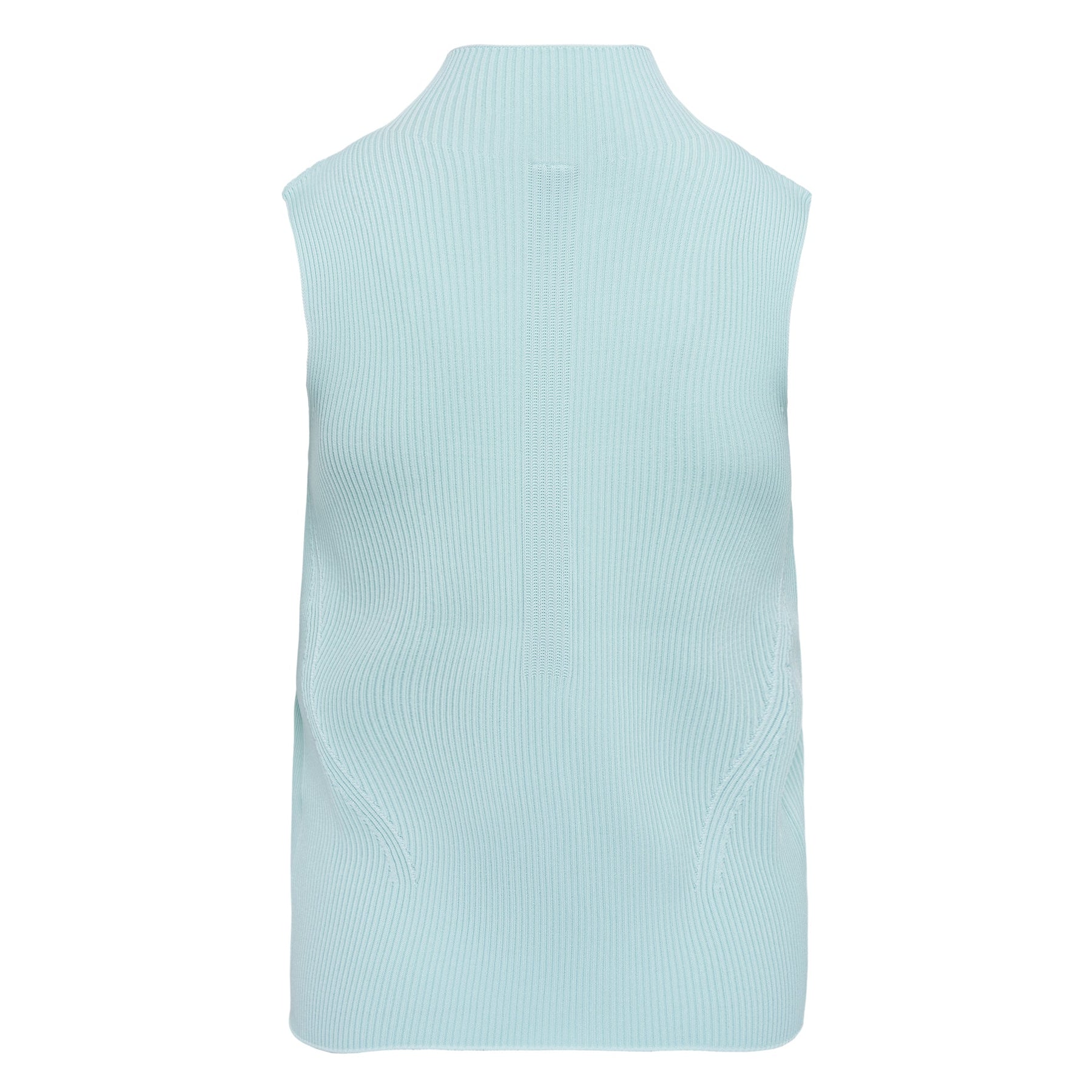 CFCL Portrait Sleeveless Top delivers minimalist Japanese design with innovative knit construction and contemporary versatility. Crafted from premium ribbed knit fabric in soft mint green, featuring the brand's signature high turtleneck and sleeveless silhouette. The structured ribbed texture and architectural fit create a modern essential that seamlessly transitions from casual to elevated styling.