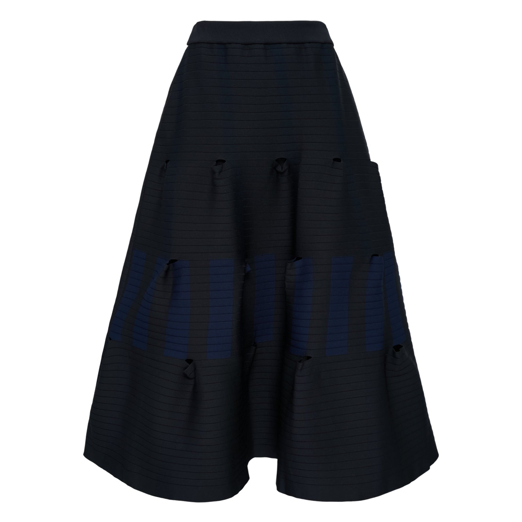 The CFCL Terraced Skirt delivers architectural elegance with innovative Japanese design philosophy and structured silhouette. Crafted from premium technical fabric in sophisticated navy with distinctive tiered construction and asymmetrical hemline details. The signature CFCL computational design approach creates dynamic movement and contemporary sophistication for modern wardrobes.