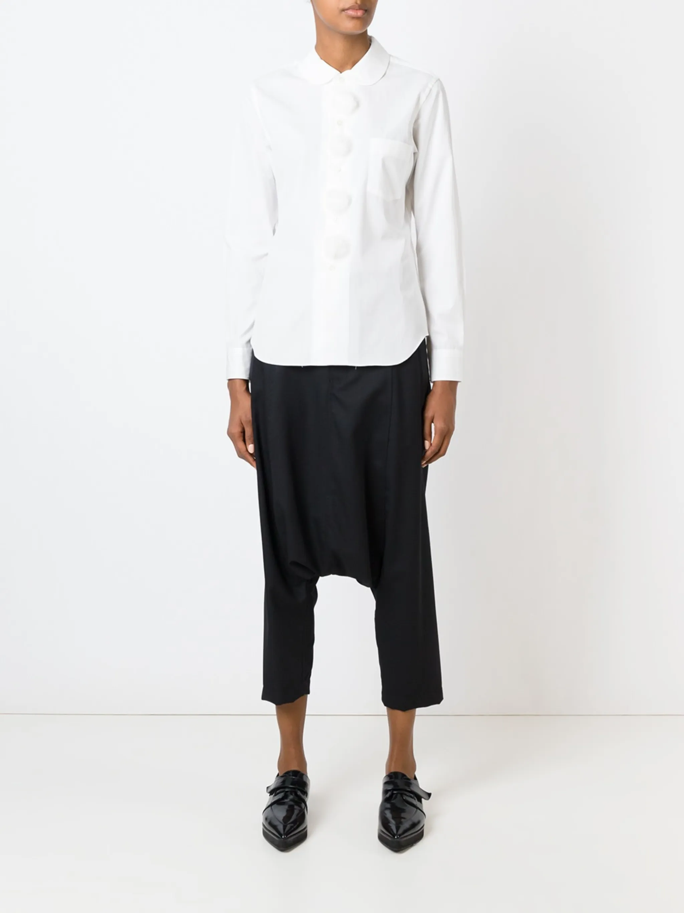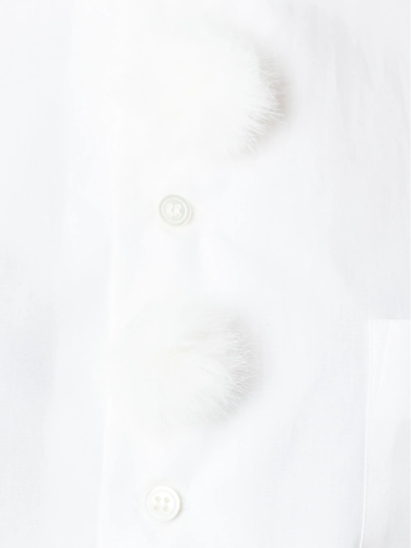 White cotton pom pom button shirt from Comme Des Garçons Girl.